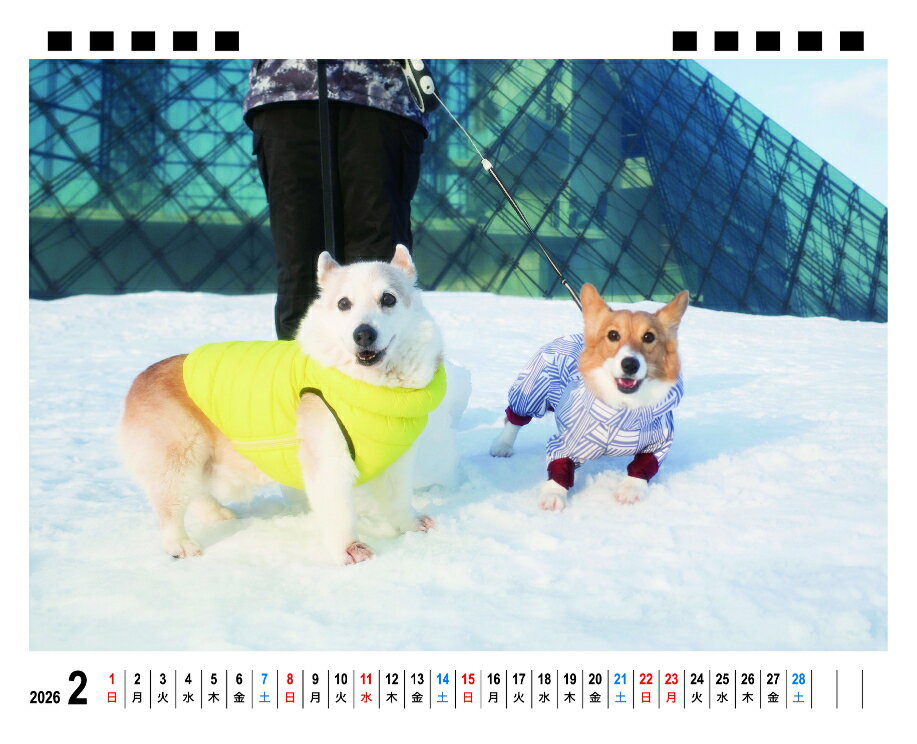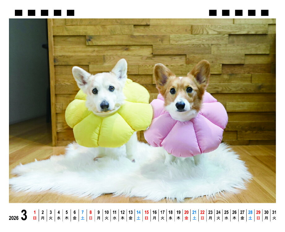 【予約販売】 ノエル&モナ コーギー 犬 2026年 卓上全面 カレンダー TA26334