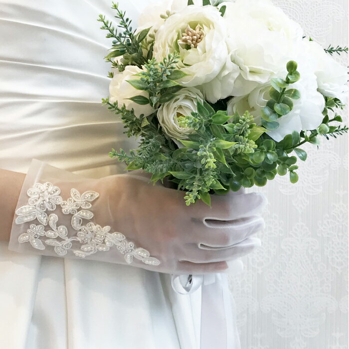 【ランキング 第1位 】【売れてます】ショートグローブ ショート グローブ フィット&スマートなショート グローブ!オーガンジー・オフホワイト ウエディング ブライダル グローブウェディング グローブ パール