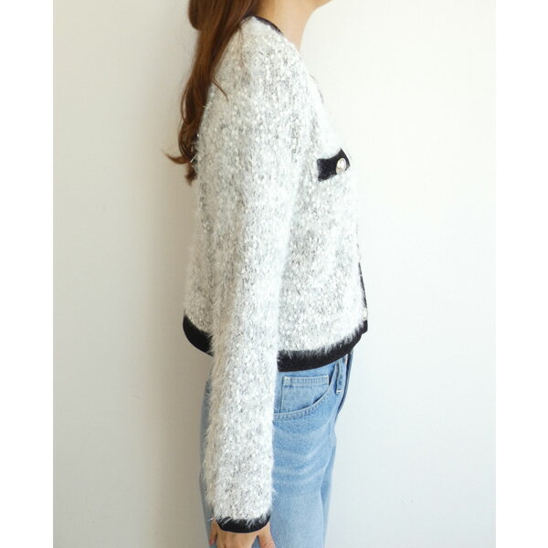 【期間限定10%OFF】0125453215,GRACE CONTINENTAL,ノーカラーフェザーニットカーディガン ,新作,送料無料,インスタ,,25AW
