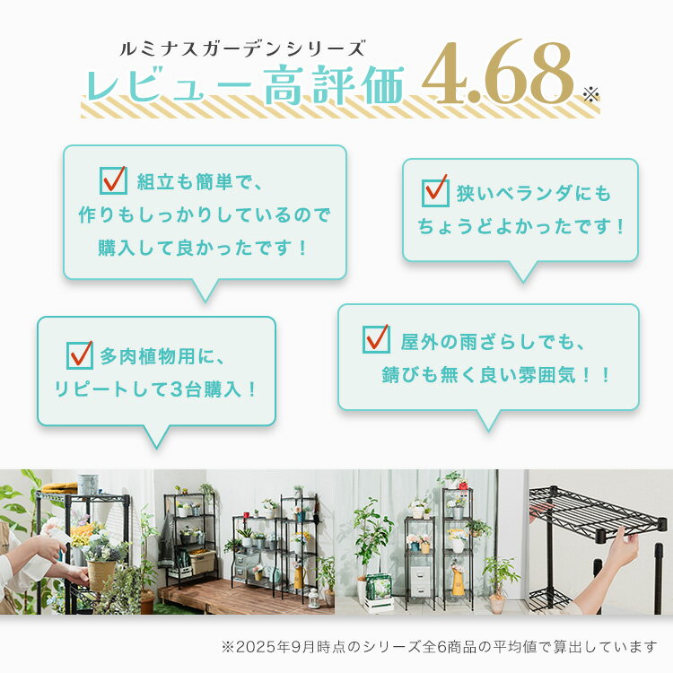 \10%OFF★楽天スーパーSALE/【屋外OK サビに強い】ガーデンラック 4段 幅60 奥行30 屋外使用 室内 スチールラック スリム 防錆 防サビ フラワースタンド プランター エクステリアラック アウトドア 園芸 鉢置き 観葉植物 収納 棚 バルコニー ベランダ 植物棚 GR6012BD-4
