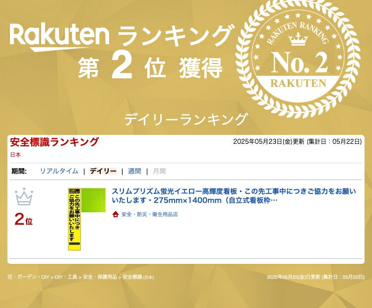 商品情報サイズ(約)●板サイズ:幅275mm×縦1,400mm●枠付サイズ:幅280mm×高さ1,550mm材質スチール重量約4kg送料の件北海道、沖縄県、離島は別途送料が必要となります。関連商品スリムプリズム蛍光イエロー高輝度看板・作業中につきご協力をお願い致しま...スリムプリズム蛍光イエロー高輝度看板・この先作業中につきご協力をお願い...スリムプリズム蛍光イエロー高輝度看板・復旧作業中・275mm×1400...4,840円4,840円4,840円スリムプリズム蛍光イエロー高輝度看板・左折工事中 車両通行止・275m...スリムプリズム蛍光イエロー高輝度看板・○○工事中・区間・期間・施工・2...スリムプリズム蛍光イエロー高輝度看板・この先左折後工事中につきご協力を...4,840円4,840円4,840円スリムプリズム蛍光イエロー高輝度看板・この先右折後工事中につきご協力を...スリムプリズム蛍光イエロー高輝度看板・この先左折後作業中につきご協力を...スリムプリズム蛍光イエロー高輝度看板・この先車両通行止のため迂回ご協力...4,840円4,840円4,840円スリムプリズム蛍光イエロー高輝度看板・速度落としてください・275mm...スリムプリズム蛍光イエロー高輝度看板・左折後片側通行・275mm×14...スリムプリズム蛍光イエロー高輝度看板・右折後片側通行・275mm×14...4,840円4,840円4,840円スリムプリズム蛍光イエロー高輝度看板・この先工事中につきご協力をお願いいたします・275mm×1400mm(自立式看板枠付) 工事看板 作業看板 立て看板 高輝度工事看板 高輝度作業看板 プリズム工事看板 プリズム作業看板 中段、下段文字入れ無料。エイブリィ社製で、褪色しにくく、自立式の枠が付いた商品になります。 1