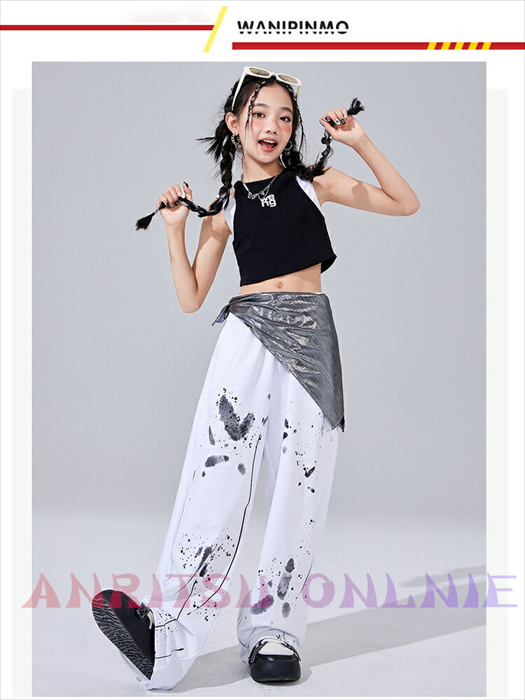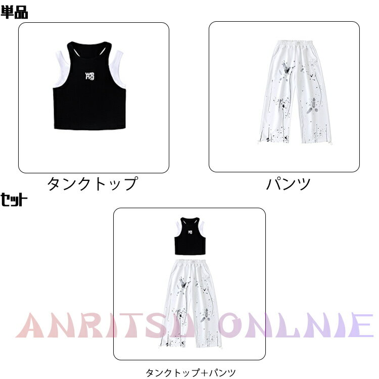jazz 黒 総柄 落書き柄 へそ出し 肩出し キッズ ダンス衣装 セットアップ ファッション 女の子 ゆったり ダンスウェア タンクトップ ショート丈 カジュアルパンツ サルエルパンツ チア チアガール hiphop ジャズダンス 韓国 k-pop 演出服 練習着 発表会 団体服 応援団 原宿系