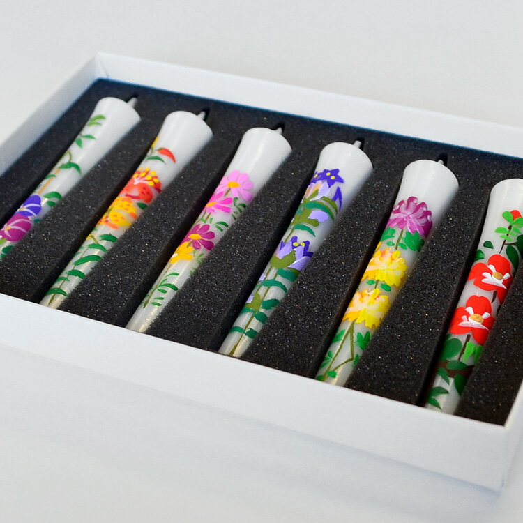 手描き絵ろうそく 7月から12月の花「花の詩」3号6本入り絵蝋燭 絵ローソク 花ろうそく 進物 お仏壇 お供え お彼岸 お盆 新盆見舞 喪中見舞 月命日 御供 蝋燭 贈答用 供花 ろうそく 灯明 手作り 秋冬 お花 季節の花 癒し ろうそく 手書き 絵ろうそく 夏