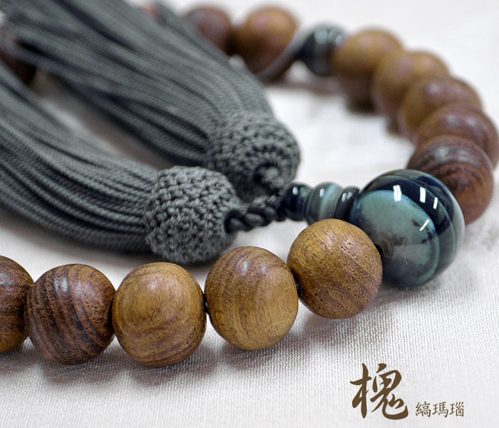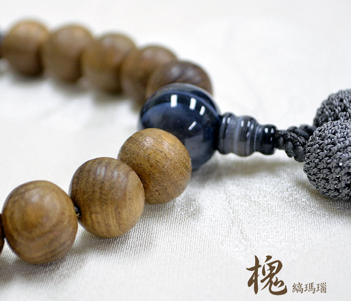 【略式念珠】【男性用数珠】槐 (えんじゅ)22玉〔縞瑪瑙仕立〕正絹頭房/桐箱 紬の念珠入れ付き【パワーストーン】【数珠】【仏具】【法要】【お通夜】【お葬式】【お墓参り】【お盆】【お彼岸】【冠婚葬祭】【プレゼント】【厄除け】【お守り】