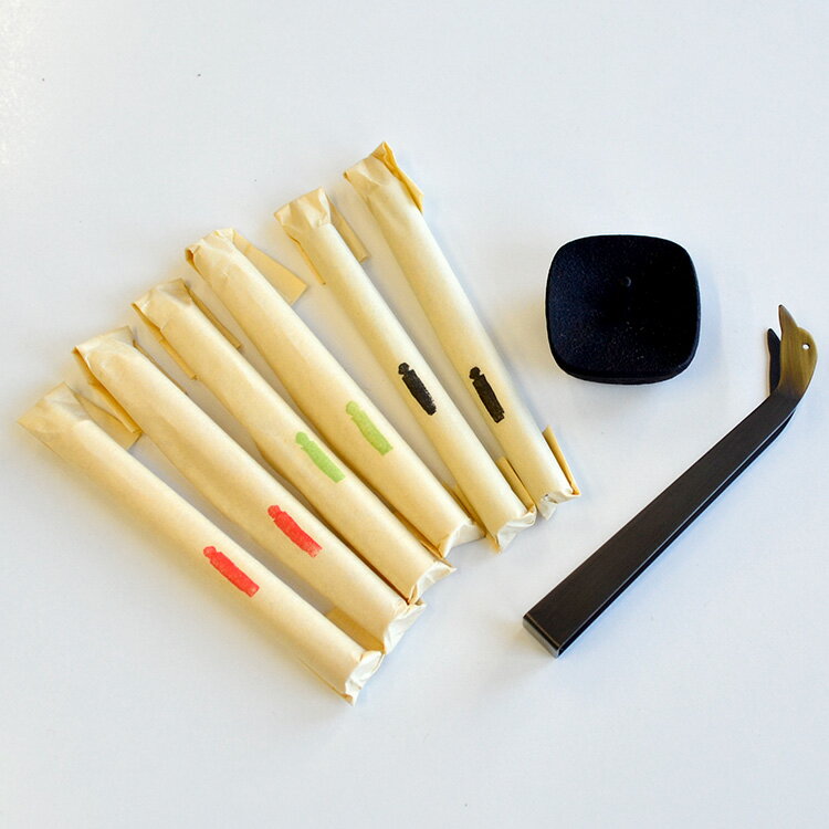 伝統手技「手掛け」を使用した手掛け和ろうそく「夢」。今だからこそ、創業当時の技を復活させて、残し次に繋げていく必要があるのではないかと思い、改めてこの「手掛け」という製法を開始しました。温かみを感じ、そして灯された火は力強くも温かい、そんな和ろうそくです。こちらは「手掛けの和ろうそく」の全3色各2本と燭台とろうそく消しのセット品です。 商品名 : 手掛け和ろうそく「夢」燭台・ろうそく消しセット(ろうそく全3色 各2本入り) メーカー : 高澤ろうそく 商品サイズ : ろうそく・約直径1x長さ11cm(芯含む) 燭台・約4x4x3cm(芯を含む高さ) ろうそく消し・約10.5x2.5x1.2 cm 燃焼時間 : 約45分 箱サイズ : 約幅4.5×高さ17×厚み4cm ※和ろうそくは時間経過とともに表面が白い薄い膜に覆われます。これは空気中の酸素と呼吸しながらの変化ですので、使用には差しつかえありません。 ※包み紙は、はぜの実を絞った皮を能登人行和紙に、すき込んだ和紙です。皮の部分は、はがれる場合があります。1892年に創業し、 能登七尾で和ろうそくを作り続けている 高澤ろうそく。 稀少伝統工芸品である、七尾和ろうそくを現在も作り続けているのは、 石川県内で高澤ろうそくさんのみです。 自然の材料でできた、環境にも身体にも優しいろうそくは、 たくさんの方達に愛されています。 高澤ろうそくさんの新たなろうそくシリーズが届きました。 高澤商店は約130年前に能登 七尾で創業しました。 創業当時の和ろうそく作りとは、すべて手作業で作る手掛けという方法です。 芯を一本一本手で巻き、溶かしたロウを手にすくい、芯にロウを掛けていき 少しずつ太くしていくという製法です。 昭和に入り、人口の増加によって、和ろうそくの需要が増えました。 たくさんの人にろうそくを届けたいという気持ちから 「型掛け」という製法に少しずつ切り替えていきました。 でも今だからこそ、創業当時の技を復活させて、 残し次に繋げていく必要があるのではないかと思い、 改めてこの「手掛け」という製法を開始しました。 「手掛け和ろうそく 夢」はそんな想いから完成したシリーズです。 一般的に蝋燭(キャンドル)は糸芯を使用します。 ですが手掛け和ろうそくは紙を巻いて作った紙芯を使用します。 そこにロウを手に取り、掛け、乾燥させ、 幾重にも重ねていき、製作します。 現在、この技法ができる職人は全国で10人ほどだそうです。 まさに後世に繋げていきたい伝統的な技法ですね。 手掛け和ろうそく・燭台・ろうそく消しがセットになっています。 手掛け和ろうそくは国産ハゼ蝋のみを使用し、 創業時の製法にて作られた新しい形状の和ろうそくです。 さらに包み紙は、 はぜの実を搾った皮を能登仁行和紙にすき込んだ和紙を使用しています。 手掛け和ろうそく 夢は全部で3色あります。 黄櫨色5本・朱色5本・墨色5本の計15本入りです。 その中の「墨色」ろうそくは、 石川県珠洲市で作っている「炭」の商品化できない部分を砕いて、 蝋に練り込み再利用しています。 ハゼロウで作られた和ろうそくは、 油煙が少なく、粘り気があるため、 溶けたロウが流れ落ちにくいのが特徴です。 また深くあたたかみのある和ろうそく、 やわらかに揺れる炎は、ゆったりとした時間を生み出します。 「ろうそく消しあひる」は、 火を消したり、芯の長さを整えたりと便利な真鍮製のアイテム。 高岡の株式会社 能作さんによるろうそく消し。 ただ便利なだけでなく、デザイン性も優れています。 炎を美しく保つために、炎の大きさの調節にご使用ください。 手掛け和ろうそく・燭台・ろうそく消しがセットになった "手掛け和ろうそく「夢」燭台・ろうそく消しセット" 和ろうそく特有の温もりのある手触り。 力強いあかりが周りを照らし、炎の揺らぎはまるで音楽のよう。 五感を満たす和ろうそくは ご自宅用としてもギフトとしてもおすすめです。