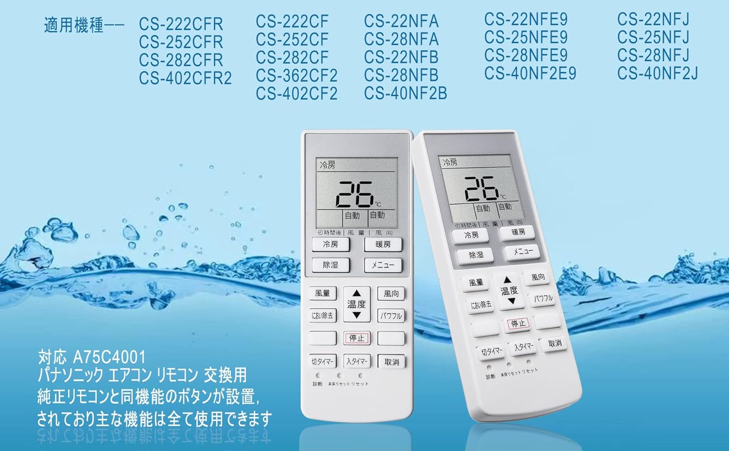 エアコン リモコン A75C4001 パナソニックエアコン リモコン 交換用 panasonic エアコン リモコン 汎用 対応 パナソニック エアコン リモコン A75C4001 パナソニック エアコンリモコン CWA75C4002X 適用機種 CS-222CFR CS-252CFR CS-282CFR CS-402CFR2 CS-222CF CS-252CFなど