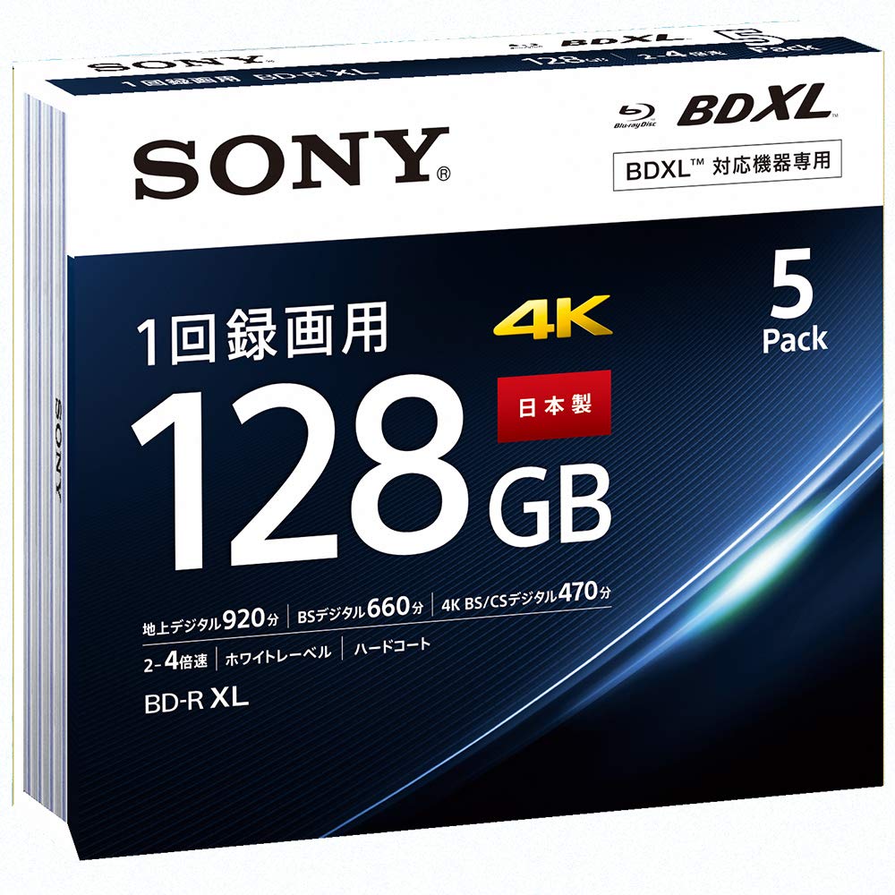 ソニー 日本製 ブルーレイディスク BD-R XL 128GB (1枚あたり地デジ約15時間) 1回録画用 5枚入り 4倍速ダビング対応 ケース付属 5BNR4VAPS4