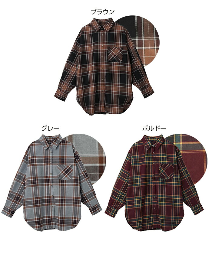 チェックシャツ オーバーサイズ チェック柄 シャツ ブラウス レディース カーディガン トップス シャツブラウス 体型カバー ゆったり 長袖 チュニック 長袖トップス 柄トップス 襟 衿 ステンカラー 厚手 カジュアル トレンド あったか 暖か 防寒 M L 春夏 秋冬 春 秋 冬