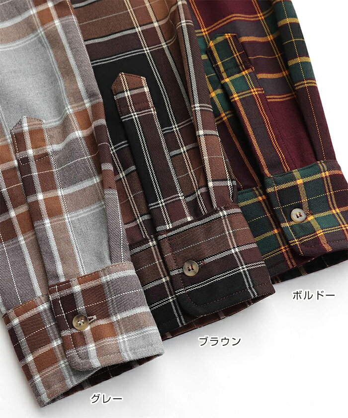参考サイズ:【Mサイズ】着丈:77cm肩幅:47.5cm身幅:62cm袖丈:53.5cm裾幅:60.5cm袖口:11cm裄丈:78cm重さ:約483g参考サイズ:【Lサイズ】着丈:78.5cm肩幅:57cm身幅:73cm袖丈:57cm裾幅:71cm袖口:11cm裄丈:86cm重さ:約582g素材:ポリエステル80% レーヨン17% ポリウレタン3%≪備考≫伸縮性:なし透け感:なし生地の厚さ:やや厚手肌ざわり:さらっとしているその他:起毛感なし生産地:中国洗濯機:可 ドライクリーニング:可 ウェットクリーニング:可モデル着用アイテム: パンツ※在庫切れ・販売終了・近日発売予定の商品はリンク切れしていることがございます。 大きめチェック柄がトレンド感たっぷりな新作チェックシャツが入荷しました♪ふんわりと柔らかで中肉厚の風合いが暖かく心地よく、 絶妙なチェック柄がスタイリングにアクセント加えてくれる1枚。ニュアンスのある背中タックに、衿を抜いて着用した際のシルエットにもこだわりました。アウター感覚で着られるサイドポケット付き。Mサイズは程よいゆとり×ヒップが隠れる丈感に仕上げ、ベーシックなシルエットが着まわしやすいサイズ感です。Lサイズはオーバーサイズ×ヒップが隠れる丈感に仕上げ、今年らしいゆったりシルエットが旬のサイズ感です。MサイズとLサイズで、身幅に大きく差をつけており、お好みやスタイリングに合わせてサイズ選びがお楽しみ頂けます♪そのままサラッと着るのはもちろん、季節に合わせたレイヤードコーデや羽織りとしても大活躍!当店デザイナーのこだわりが詰まった、1枚で着映えるオススメitemです♪※生地の特性上、部分的に糸のかたまりのような状態がみられる場合がございます。不良品ではございませんのでご了承の上お買い求めください。※撮影時のライティング、ご覧になっているモニター・PC環境により実際の商品と色味が異なって見える場合がございます。ご了承の上お買い求め下さい。 モデル着用アイテム: パンツ※在庫切れ・販売終了・近日発売予定の商品はリンク切れしていることがございます。 モデル着用アイテム: パンツ※在庫切れ・販売終了・近日発売予定の商品はリンク切れしていることがございます。 モデル着用アイテム: パンツ※在庫切れ・販売終了・近日発売予定の商品はリンク切れしていることがございます。