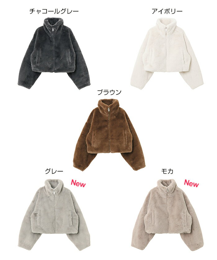 ショート丈 ファー ブルゾン レディース ボアコート ファーベスト ファーコート ブルゾン ジャンパー アウター 羽織り 体型カバー ゆったり ボリューム袖 スタンドカラー ジップ フェイクファー 起毛 セレモニー 秋服 冬服 あったか 暖か 防寒 M L 秋冬 春 秋 冬
