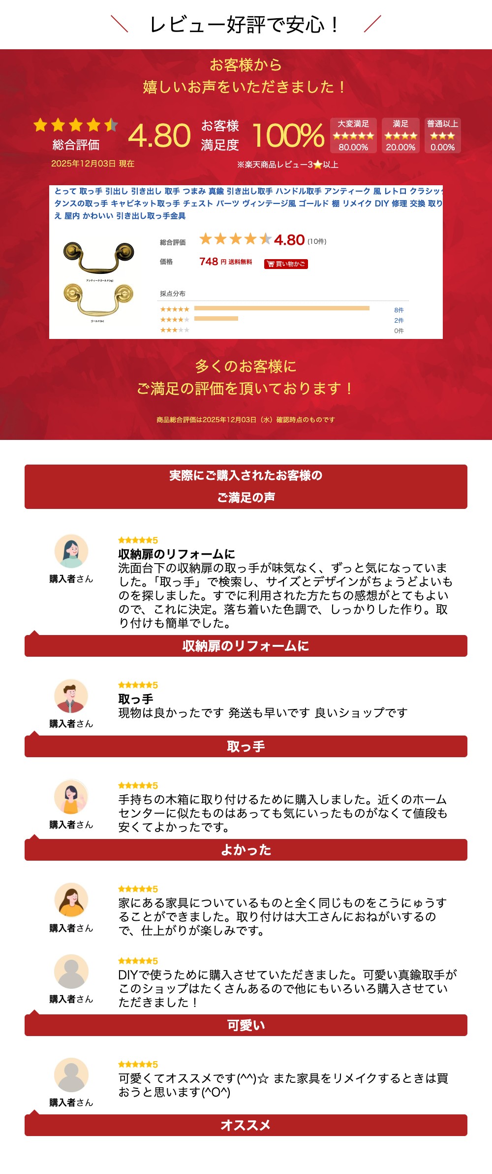 *在庫数を確認のうえご注文お願い致します* 商品詳細 -infomation- 納期 在庫有の場合:2営業日以内に発送在庫切れの場合:納期をご連絡致します不足商品の取扱い商品名 引出し取っ手 B004 サイズ サイズ 幅98x高さ44mm ベース 直径26mm 取付ピッチ 72±2.0mm ※ハンドメイドで製作している為、サイズには多少の誤差があります。 材質 真鍮 生産国 インドネシア カラー アンティークゴールド(antique)、ブラック(black)、ゴールド(polished brass)、シルバー艶消し(silver doff.) 付属品 トラスねじ M4(4mm)x長さ25mm ※ご注文時【備考欄】に取付板の厚みをご記入頂けると、適合する長さのねじに変更致します。 発送について 購入金額3980円以上で送料無料(税込み) ※追跡可能メール便で発送致します。 商品の特徴 【アンティークゴールド/アンティークブラック】 ※オイルステイン塗装 着色には炭、植物オイルを使用しています。 炭の含有量により黒味の度合いが変わります。 ハンドメイドの為、サイズ・色合いが多少異なる 場合もあります。 予めご了解お願いいたします。 【真鍮磨き仕上げ】 ※真鍮素地を磨き、透明クリア塗装で仕上げています。 【シルバー仕上げ】 ※真鍮素地にシルバー艶消し塗装で仕上げています。 お手入れ 真鍮商品は長期間埃等が付着すると変色の原因になります。 布などを使用して埃等を取り除くと、長期間に渡り商品の風合いをお楽しみいただけます。 関連商品とって 取っ手 取手 引出し 引き出し 真鍮 ゴールド アンティーク ...とって 取っ手 取手 引出し 引き出し 真鍮 ゴールド アンティーク ...とって 取っ手 取手 引出し 引き出し 真鍮 ゴールド アンティーク ...781円891円692円とって 取っ手 取手 引出し 引き出し 真鍮 ゴールド アンティーク ...とって 取っ手 引出し 引き出し取手 キャビネット取っ手 アンティーク...とって 取っ手 取手 引出し 引き出し 真鍮 ゴールド アンティーク ...836円957円781円とって 取っ手 取手 引出し 引き出し 真鍮 ゴールド アンティーク ...とって 取っ手 取手 引出し 引き出し 真鍮 ゴールド アンティーク ...とって 取っ手 取手 引出し 引き出し 真鍮 ゴールド アンティーク ...891円1,100円1,166円とって 取っ手 取手 引出し 引き出し 真鍮 ゴールド アンティーク ...とって 取っ手 取手 引出し 引き出し 真鍮 ゴールド アンティーク ...とって 取っ手 取手 引出し 引き出し 真鍮 ゴールド アンティーク ...794円1,012円692円