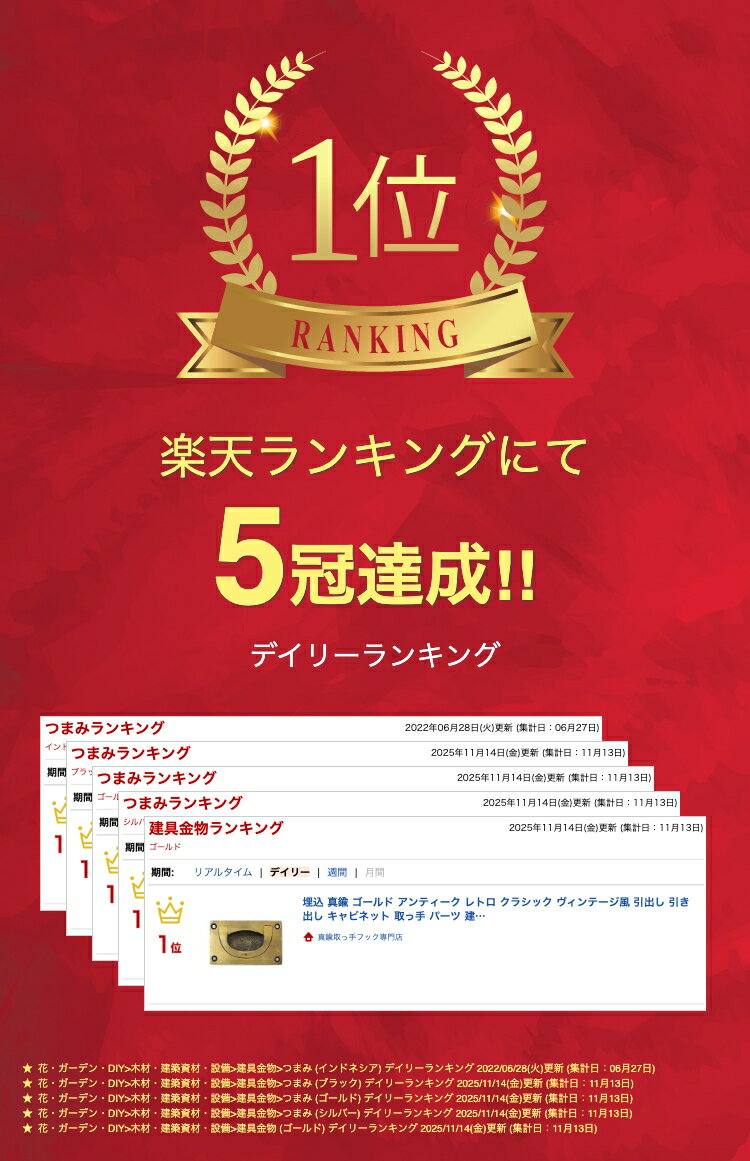 埋込 真鍮 ゴールド アンティーク レトロ クラシック ヴィンテージ風 引出し 引き出し キャビネット 取っ手 パーツ 建具 建材 リメイク DIY 修理 交換 取り換え オイルステイン塗装 取付ねじ付属 ネコポス発送 アンティークゴールド キャビネット取っ手