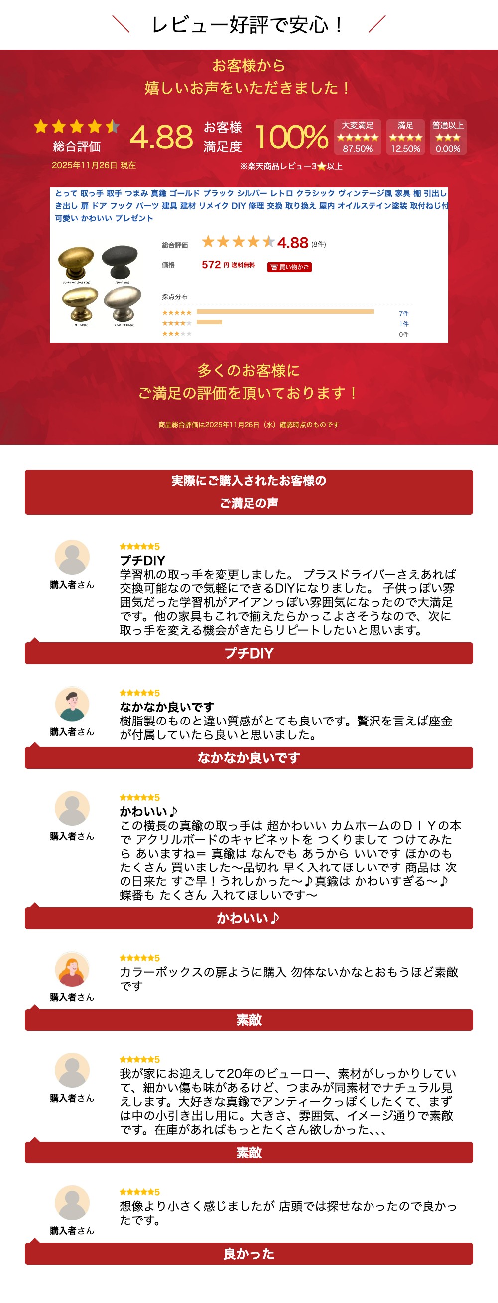 *在庫数を確認のうえご注文お願い致します* 商品詳細 -infomation- 納期在庫有の場合:2営業日以内に発送在庫切れの場合:納期をご連絡致します不足商品の取扱い商品名 つまみ取っ手 N021 サイズ サイズ 幅24x高さ17x奥行20mm ベース 直径14mm ※ハンドメイドで製作している為、サイズには多少の誤差があります。 材質 真鍮 生産国 インドネシア カラー アンティークゴールド(antique)、ブラック(black)、ゴールド(polished brass)、シルバー艶消し(silver doff.) 付属品 トラスねじ M4(4mm)x長さ25mm ※ご注文時【備考欄】に取付板の厚みをご記入頂けると、適合する長さのねじに変更致します。 発送について 購入金額3980円以上で送料無料(税込み) ※追跡可能メール便で発送致します。 商品の特徴 ●オイルステイン塗装(アンテイークゴールド/ブラック) ※着色には炭、植物オイルを使用しています。 炭の含有量により黒味の度合いが変わります。 ハンドメイドの為、サイズ・色合いが多少異なる 場合もあります。 予めご了解お願いいたします。 ●真鍮磨き仕上げ(ゴールド) ※真鍮素地を磨き、透明クリア塗装で仕上げています。 ●シルバー仕上げ ※真鍮素地にシルバー艶消し塗装で仕上げています。 お手入れ 真鍮商品は長期間埃等が付着すると変色の原因になります。 布などを使用して埃等を取り除くと、長期間に渡り商品の風合いをお楽しみいただけます。 関連商品とって 取っ手 取手 つまみ 真鍮 ゴールド ブラック シルバー レト...とって 取っ手 取手 つまみ 真鍮 ゴールド ブラック シルバー レト...とって 取っ手 取手 つまみ 真鍮 ゴールド ブラック シルバー レト...572円627円506円とって 取っ手 取手 つまみ 真鍮 扉のつまみ ゴールド ブラック シ...とって 取っ手 取手 つまみ 真鍮 ゴールド ブラック シルバー レト...とって 取っ手 取手 つまみ 真鍮 ゴールド ブラック シルバー レト...748円825円836円とって 取っ手 取手 つまみ 真鍮 ゴールド ブラック シルバー レト...とって 取っ手 取手 つまみ 真鍮 ゴールド ブラック シルバー レト...とって 取っ手 つまみ 真鍮 ゴールド ブラック シルバー レトロ ク...803円891円891円とって 取っ手 取手 つまみ 真鍮 ゴールド アンティーク レトロ ク...とって 取っ手 取手 つまみ 真鍮 ゴールド ブラック シルバー レト...とって 取っ手 取手 つまみ 真鍮 ゴールド ブラック シルバー レト...561円572円242円