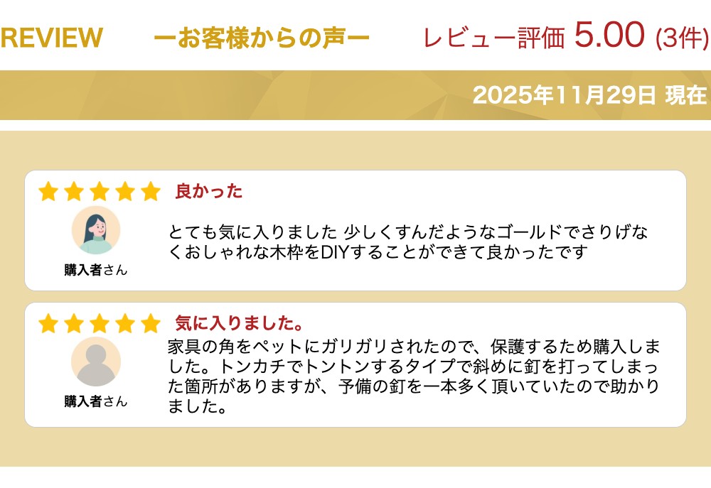 *在庫数を確認のうえご注文お願い致します* 商品詳細 -infomation- 納期在庫有の場合:2営業日以内に発送在庫切れの場合:納期をご連絡致します在庫切れの注文ご注文可(入荷にお時間がかかります。)ご注文前にご確認下さい商品名 コーナー金物 T014 サイズ サイズ: 幅24x高さ15mm ※ハンドメイドで製作している為、サイズには多少の誤差があります。 材質 真鍮 生産国 インドネシア カラー アンティークゴールド(color:antique) 付属品 木ねじ 長さ10mm 又は ふすま釘 長さ16mm 発送について 購入金額3980円以上で送料無料(税込み) ※追跡可能メール便で発送致します。 商品の特徴 オイルステイン塗装 ※着色には炭、植物オイルを使用しています。 炭の含有量により黒味の度合いが変わります。 ハンドメイドの為、サイズ・色合いが多少異なる 場合もあります。 予めご了解お願いいたします。 お手入れ 真鍮商品は長期間埃等が付着すると変色の原因になります。 布などを使用して埃等を取り除くと、長期間に渡り商品の風合いをお楽しみいただけます。 関連商品コーナー金具 真鍮 ノブ 引き出し アンティークゴールド...コーナー金具 真鍮 ノブ 引き出し アンティークゴールド...アンティークゴールド ブラック ゴールド シルバー艶消し ホワイトの猫...385円385円363円アンティークゴールド ブラック ゴールド シルバー艶消し ホワイトの猫...太鼓鋲 たいこびょう 装飾鋲 真鍮 ゴールド アンティーク レトロ ク...キーホール 真鍮 小箱 引き出し ボックス アンティーク ゴールド D...396円372円356円コーナー金具 真鍮 ノブ 引き出し アンティークゴールド...コーナー金具 真鍮 ノブ 引き出し アンティークゴールド...コーナー金具 真鍮 ノブ 引き出し アンティークゴールド...451円451円451円キーホール 真鍮 小箱 引き出し ボックス アンティーク ゴールド D...コーナー金具 真鍮 ノブ 引き出し アンティークゴールド...キーホール 真鍮 小箱 引き出し ボックス アンティーク ゴールド D...356円306円356円