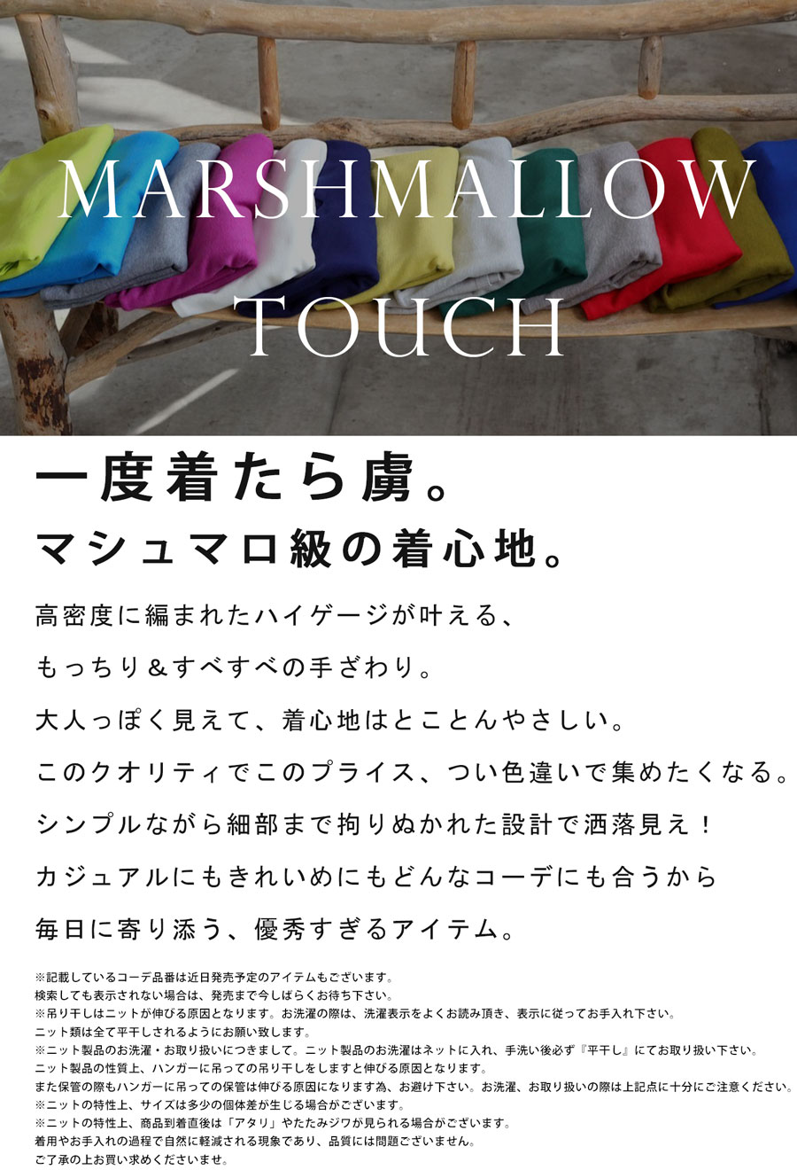 ▼▼▼ 肌ざわりまで惚れる、極上の着心地。上品に映える“美人ニット”。 もっちりとしたマシュマロタッチが魅力のハイゲージニットです。 目の細かい編み地が上品で、大人っぽい印象を演出します。 厚すぎず薄すぎない程よい厚みで、秋冬シーズンに快適な着心地 コクーンシルエットで身体のラインを拾わず、裾で自然にフィットして細見えを叶えます。 首元は4タイプから選べ、Vネックはシャープに、ボートネックは上品に、クルーネックは万能に、ハイネックは暖かくトレンド感をプラス。 シンプルな無地だから、カジュアルにもきれいめにも幅広くコーディネートできます 肌ざわりはすべすべで、表面にほんのり光沢があり高級感たっぷり。 一度着れば虜になる心地よさで、色違いで揃えたくなる一枚です。 【カラー】 <ボートネック>アイボリー、レッド、杢ベージュ、ピンクミックス、ブルー、ネイビー、杢グレー、ダークグレー、ライムイエロー <クルーネック>杢ベージュ、ブラック、ブルー、アイボリー、杢グレー、グリーン、マスタード、コバルトブルー、レッド、ピンクミックス、ライムイエロー <ハイネック>ブラック、杢ベージュ、杢グレー、ブルー、アイボリー、レッド、ピンクミックス、ライムイエロー <Vネック>ピンクミックス、アイボリー、ブルー、ネイビー、オートミール、モス、ダークグレー、レッド、ブラック 【着用シーズン】秋・冬 【使用シーン】デイリー、お出かけ、旅行、リラックスタイム、レイヤードスタイル 【クルーネック】 総丈 67 胸囲(脇下) 127 肩幅 58 袖丈 52 アームホール 42 天幅 18 前下がり 9 【ハイネック】 総丈 67 胸囲(脇下) 127 肩幅 58 袖丈 51 アームホール 43 天幅 26 前下がり 6 【Vネック】 総丈 64 胸囲(脇下) 164 肩幅 69 袖丈 42 アームホール 37 天幅 17 前下がり 14 【ボートネック】 総丈 64 胸囲(脇下) 164 肩幅 69 袖丈 42 アームホール 37 天幅 22 前下がり 6 ※平置き採寸です。サイズは目安にご参考下さいませ。 ※素材の特性上、平置き採寸のサイズと実際の着用サイズとは異なります。サイズ表から±3cm差がある場合がございますので着用イメージは画像をご確認いただき、ご了承の上、お買い求めくださいませ。 素材 レーヨン45% ポリエステル28% ナイロン27% ※【商品・配送について】ご購入前にこちらの注意事項をご確認ください。 Please check the notes for this item and check this shipping note before you buy.