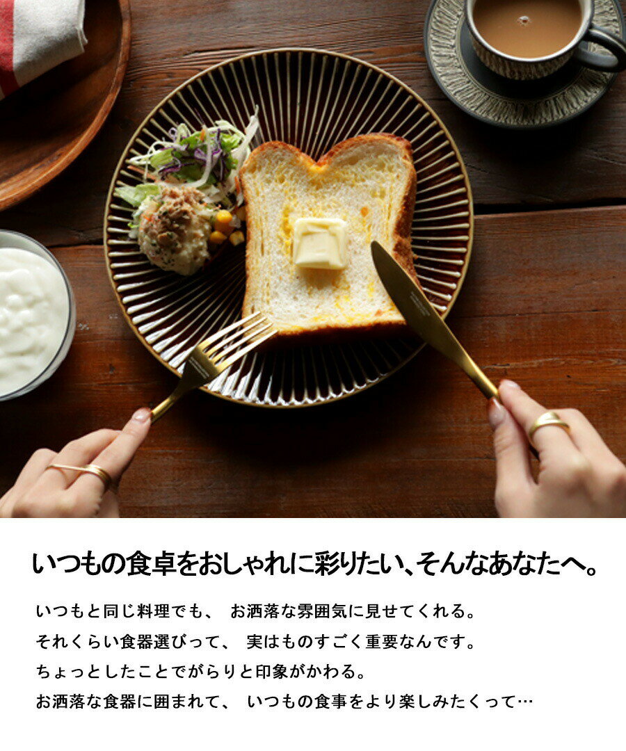 サイズ: DINNER FORK:200mm DINNER KNIFE:215mm 材質:ステンレス(チタンコーティング) ※商品の特性上、細かなキズがある場合がございます。予めご了承ください。 【ご購入前に必ずこちらをご確認下さい】 ※こちらの商品はメーカーよりセレクトした商品でございます。 ※出来るだけ実際のお色目に近づけておりますがモニターの違いや照明により、実物と画面では、見た目の色に多少違いがございます。ご了承下さいませ。 ※ご使用後は、なるべく早く液体洗剤をスポンジなどにつけて洗い、乾いた柔らかい布で拭いて水気を完全に拭き取って下さい。 ※クレンザーやスチールウール等は、表面に傷がつくことがありますので注意して下さい。 ※落としたり硬いものにぶつけると傷がつくことがありますので注意して下さい。 ※永くお使いにならない場合でもくもりを防ぐため時々柔らかい布で磨いて下さい。 ※ナイフ類の洗浄・拭き作業は、ケガに注意してください。 【検索ワード】カトラリー フォーク ナイフ ゴールド キッチン用品 キッチン雑貨 カフェ食器 カフェ風 喫茶店 テーブルウェア ティータイム 朝食 夕食 ランチ 食器 北欧 キッチンツール クッキング 料理 モダン 日用品 かわいい お洒落 10代 20代 30代 40代 50代 60代 ナチュラル カフェ おうちカフェ おうち時間 レストラン キッチン インスタ インスタ映え プレゼント ギフト 贈り物 ラッピング 誕生日 バースデー 母の日 出産祝い 就職祝い お揃い 雑貨 アンティカフェ antiqcafe
