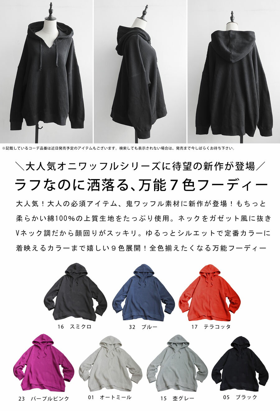 ▼▼▼ 着るだけで心ときめく。自分らしさを自由に楽しむ『antiqua(アンティカ)』 凹凸感のある鬼ワッフル素材が表情を生み出す、大人のためのフーディーパーカーが登場。 ネックラインは程よい抜け感を演出するガゼット風のネックデザインで、顔周りをすっきり見せてくれます。 袖丈と着丈はたっぷりと長めに設計されており、ゆったりとしたシルエットが体型カバーにも◎。 フードは立ち上がりのあるボリューム設計で、小顔見せ効果も期待できます。 形状はストンと落ち感のあるベーシックなプルオーバー型で、レイヤードスタイルにもぴったり。 綿素材は吸湿性と肌ざわりに優れ、チクチク感がなく快適な着心地です。 カラーは定番から差し色まで豊富に揃い、着こなしの幅も広がります。 デニムでカジュアルに、ワイドパンツでこなれ感をプラス、スカートで女性らしくも仕上がる万能な一枚。 ブラック(黒・Black)やスミクロ(墨黒・Charcoal)はシックに。 テラコッタ(橙・オレンジ系・Terracotta)やパープルピンク(紫・ピンク・Purple pink)は華やかに。 杢グレー(グレイ・Gray・ライトグレー)やオートミール(生成り・ナチュラル・Oatmeal)はナチュラルに。 ブルー(青・あお・Blue)は落ち着いた印象で、季節感のあるスタイルに仕上がります。 【カラー】ブラック/スミクロ/ブルー/テラコッタ/パープルピンク/オートミール/杢グレー 【着用シーズン】春・秋・冬 【使用シーン】デイリー、お出かけ、ワンマイル、レイヤードスタイル、ショッピング、リラックスタイム、ユニセックスコーデ ■メンズ品番za-00265zこちらよりご確認お願いいたします。 ※近日発売予定のアイテムは、画像が表示されていない、またリンクが繋がらない場合が御座います。今しばらくお待ち下さい。 サイズ 前丈 70 後丈 76 胸囲(脇下) 138 肩幅 74 袖丈 49 アームホール 54 天幅 24 前下がり 8 ※平置き採寸です。サイズは目安にご参考下さいませ。※サイズには個体差±3cmがある場合がございます。ご了承の上、お買い求めくださいませ。 素材 本体:綿100%リブ:綿95% ポリウレタン5% ※【商品・配送について】ご購入前にこちらの注意事項をご確認ください。 Please check the notes for this item and check this shipping note before you buy.
