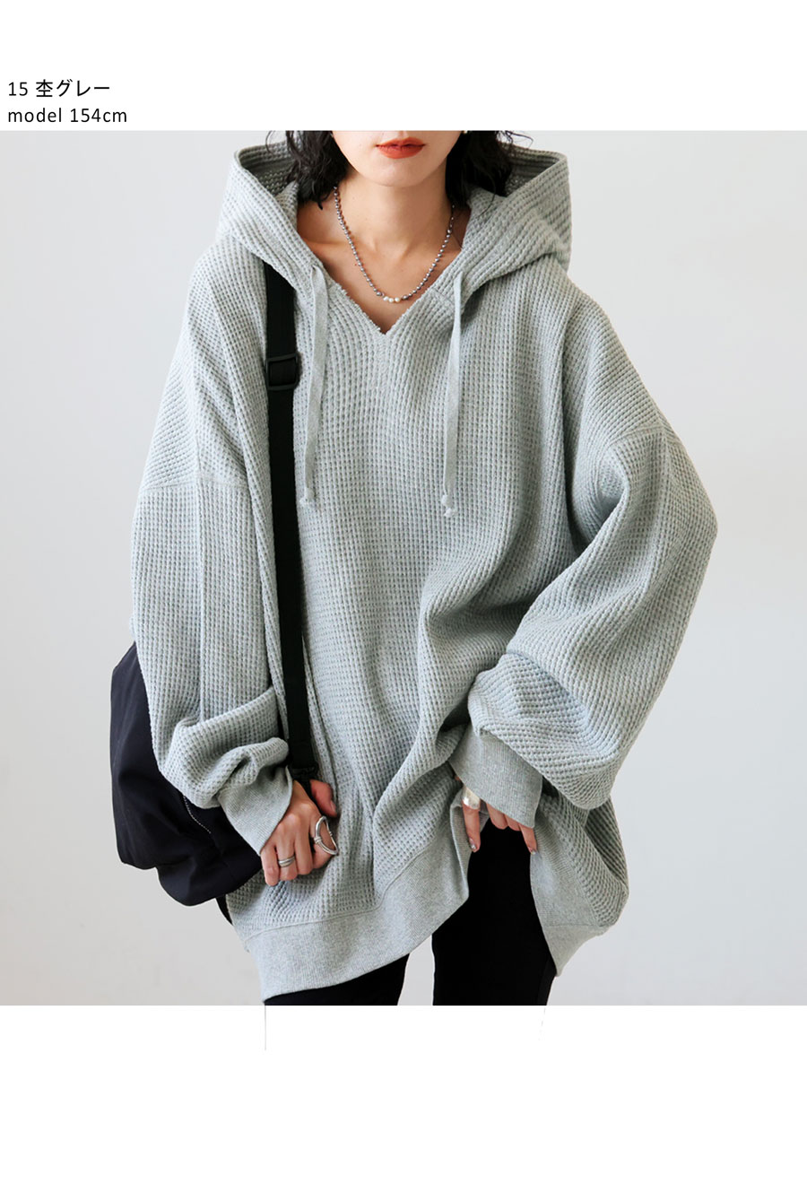 ガゼット風ネックフーディー レディース 鬼ワッフル 送料無料・メール便不可