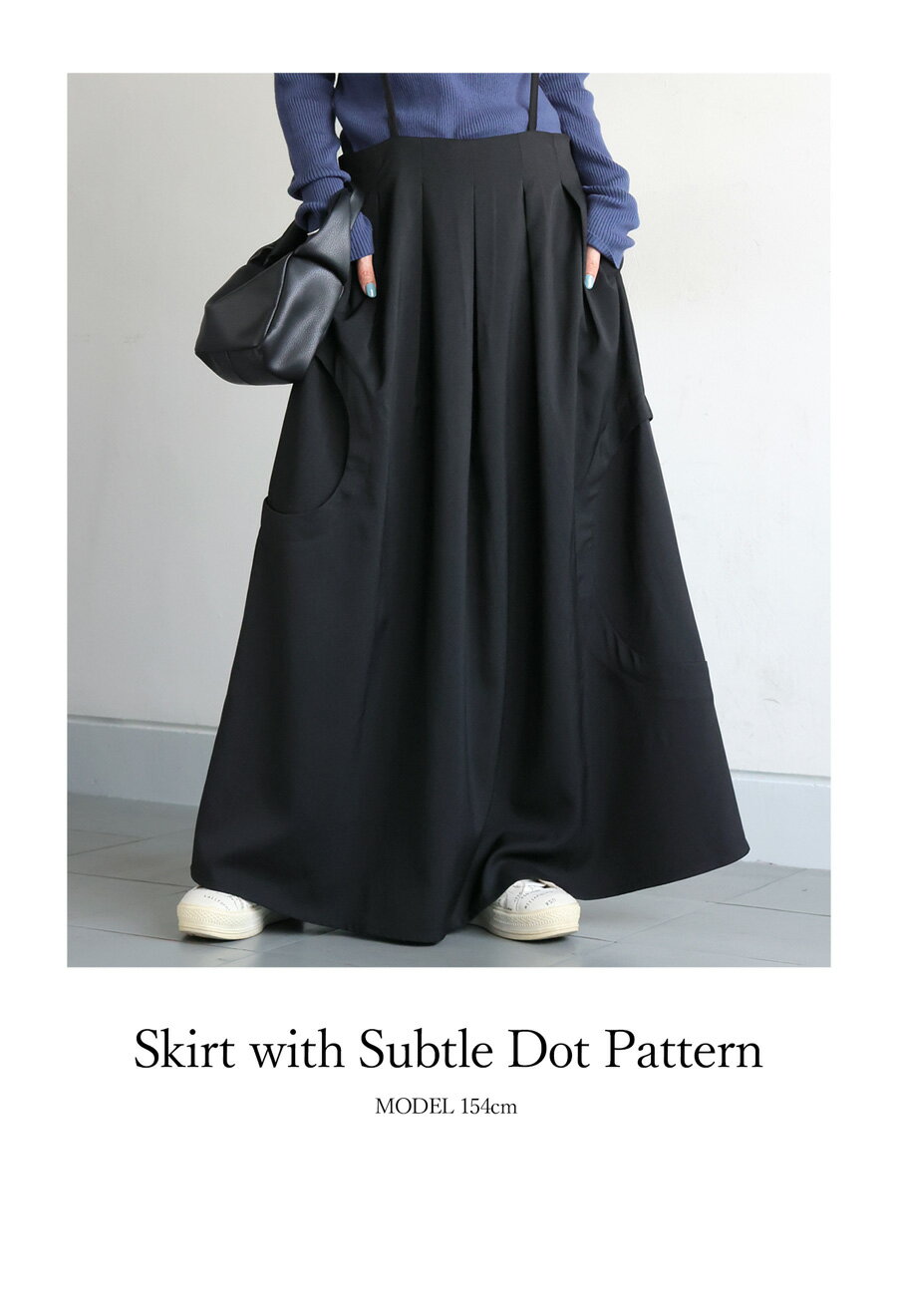 ▼▼▼ 着るだけで心ときめく。自分らしさを自由に楽しむ『antiqua(アンティカ)』 大きく切り替えられたドット風の立体デザインが印象的な、ワイドシルエットのサロペットスカートです。 シンプルな無地ながら、存在感のあるデザインで大人のモードスタイルに仕上がります。 肩紐付きの仕様で、着こなしに奥行きを持たせながらもラフな印象を演出。 Aラインのフレアシルエットが体型をカバーしつつ、美しいドレープを描きます。 軽やかでしなやかなポリエステル素材を使用し、シワになりにくくストレスフリーな着心地を実現。 落ち感のある生地感が、カジュアルにもきれいめにもマッチし、季節を問わず活躍します。 同素材のジャケット(PK-01358)と合わせてセットアップとしても楽しめ、統一感のあるスタイルが完成します。 カラーは定番のブラック(黒・くろ・Black)をご用意。シンプルな中に個性を感じられる一枚です。 【カラー】ブラック 【着用シーズン】春・夏・秋・冬・オールシーズン 【使用シーン】デイリー、お出かけ、旅行、ワンマイル、ママコーデ、ショッピング、カフェ巡り、レイヤードスタイル、オケージョン ■ジャケット品番pk-01358こちらよりご確認お願いいたします。 ※近日発売予定のアイテムは、画像が表示されていない、またリンクが繋がらない場合が御座います。今しばらくお待ち下さい。 サイズ 丈(脇) 91 ウエスト(後ろゴム伸縮あり) 62〜102 ヒップ 144 ※平置き採寸です。サイズは目安にご参考下さいませ。※サイズには個体差±3cmがある場合がございます。ご了承の上、お買い求めくださいませ。 ※こちらの商品にはセットアップ商品が御座いますが、生産時期や生地の調達状況等で、色合いや風合いに違いが発生します。ご了承の上、お買い求め下さいませ。 素材 表地:ポリエステル97% ポリウレタン3% ※【商品・配送について】ご購入前にこちらの注意事項をご確認ください。 Please check the notes for this item and check this shipping note before you buy.