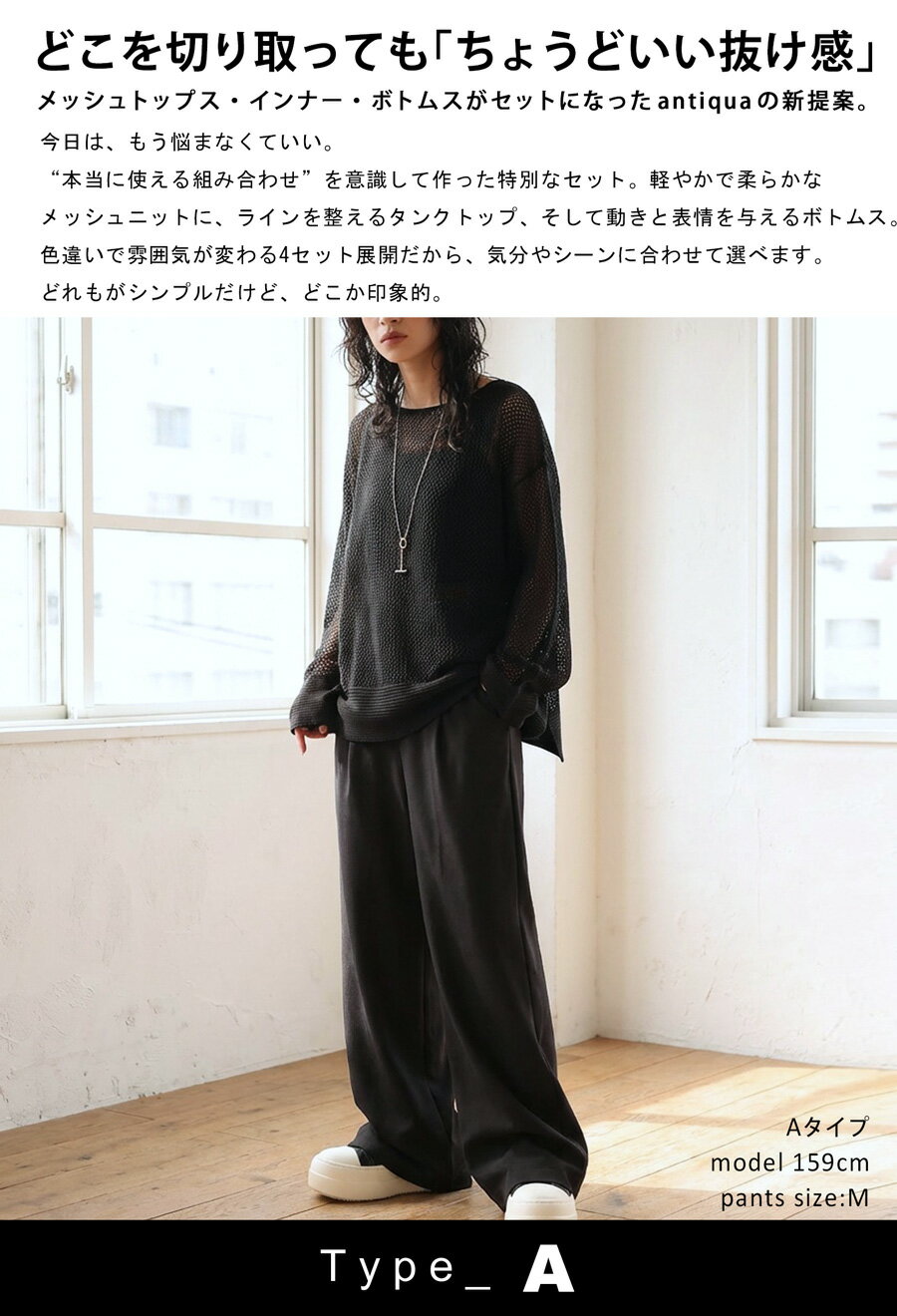 コーデセット メッシュニット タンクトップ パンツ スカート 送料無料・メール便不可