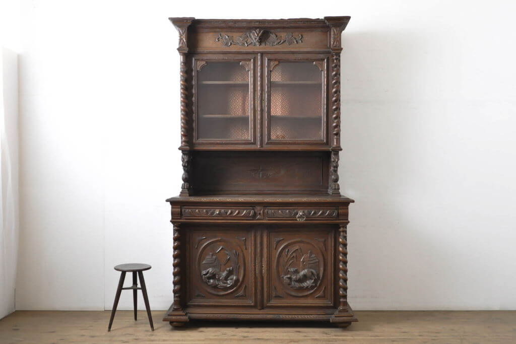★事前問合せ必須★ フランスアンティーク キャビネット カップボード 食器棚 陳列棚 収納棚 戸棚 飾り棚 棚 たな ヨーロピアン クラシカル リビング ダイニング キッチン 収納 店舗 カフェ ラフジュ工房 送料無料 r-060372