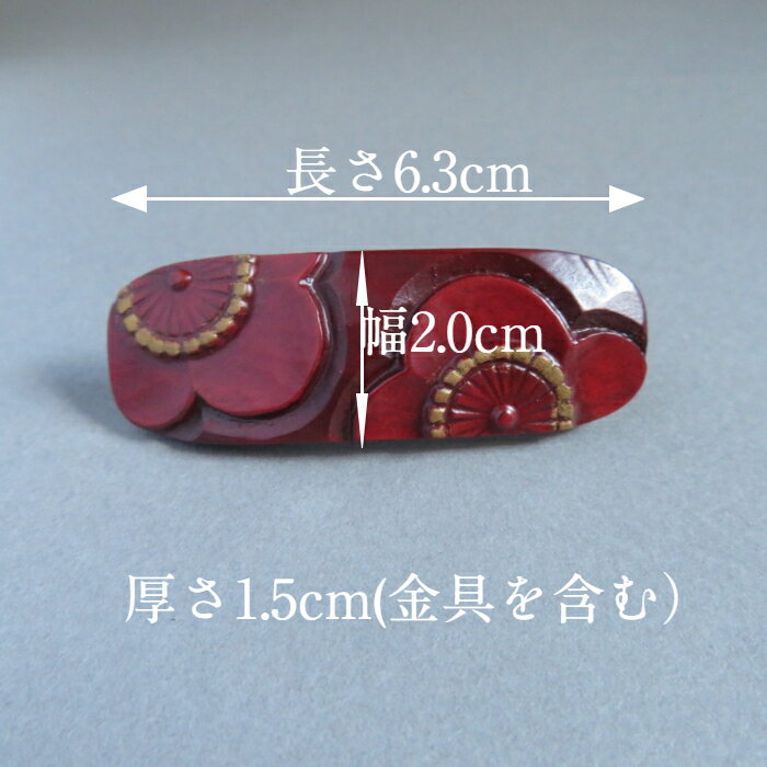 商品説明素材木製、漆、純金粉サイズ 2.0×6.3×1.5(cm)特徴 梅の花華やかにデザインされた髪飾りです。 花芯に金粉が施され、小さな梅の花を引き立てています。伝統工芸鎌倉彫の乾口塗(ヒクチヌリ)です。注意モニターの発色の具合によって実際のものと色が異なる場合がございます。