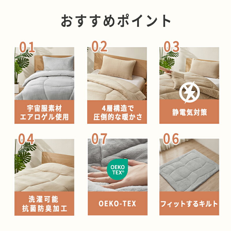 【新商品★15%OFFクーポン配布中】★羽毛を超える暖かさ★NASA宇宙服にも使用の素材 掛け布団 エアロゲル掛け布団 シングル セミダブル ダブル クイーン キング 布団 かけ布団 掛布団 ハイテク素材 健康 快眠 あったか 暖かい 吸湿発熱 放湿 抗菌防臭 ミルクファー 洗える