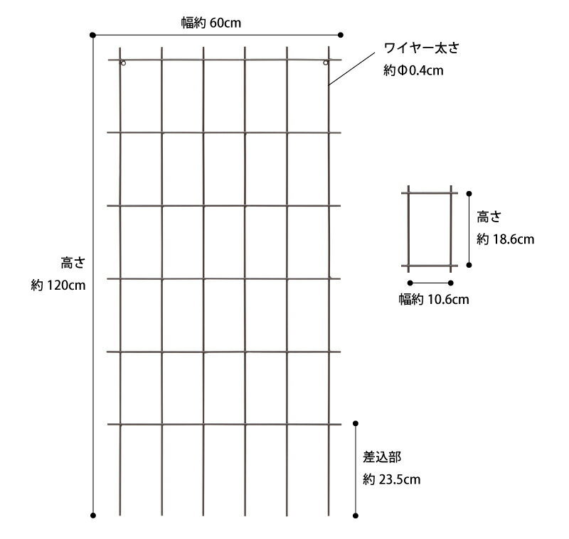 ■商品名:クライミングスクエアトレリス 1200 6枚組 ■コード:37602500 格子状のシンプルなデザイン。 スチールワイヤー製のフェンスです。 壁面に沿って地面にスパイク部を約15cm程埋め込んで固定して下さい。 つるバラやアイビーなどの蔦を絡ませることで美しいグリーンアートが壁面に浮かび上がります。 サイズ 約幅60cm×奥行0.8cm×高さ120cm差込部:約23.5cm 重量 約0.95kg 材質 スチール(パウダーコーティング) カラー ブラウン 詳細 完成品・6枚セット トレリス/フェンス/オベリスク/トピアリー/柵/仕切り/目隠し/間仕切り/誘引/つる性/バラ/ローズ/クレマチス/ガーデニング/庭/英国風/イングリッシュガーデン/お洒落/優雅/花/ガーデン/DIY/エクステリア/タカショー/ 【取付用金具はこちら】 [クライミングフェンス用金具]格子状のシンプルなデザイン。 つるバラやアイビーなどの蔦を絡ませることで美しいグリーンアートが壁面に浮かび上がります。 ■関連商品 ほかにもこんな商品がありますアイテム一覧はこちら 型番:SG-ST120/6S SG-ST120