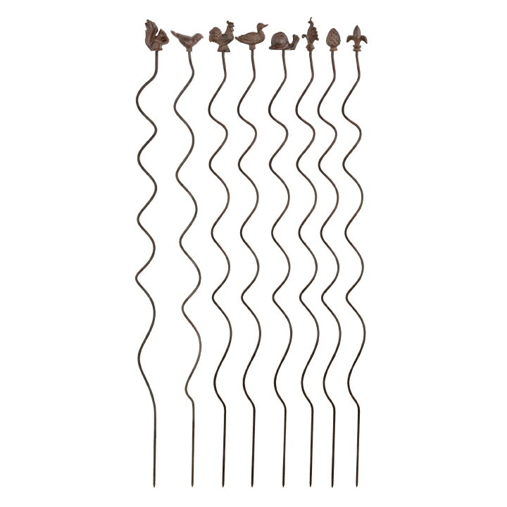 ■商品名:プランツサポートウェーブ125cm 2本組 ■商品コード:84970300 ユリ&紋章 ■商品コード:84979600 松ぼっくり&リス ■商品コード:84980200 ニワトリ&アヒル ■商品コード:84990100 小鳥&カタツム 草丈が高い植物の倒れを防止したり、つる植物を誘引するのに重宝します。 ゆるやかなウェーブラインはエレガントな雰囲気を醸し出すだけでなく、 誘引ひもがずり下がるのを防ぐ機能も兼ね備えます。 トップの飾りも庭のおしゃれなアクセントに。 【商品詳細】 サイズ:約幅6cmx奥行3cmx高さ131cm(1本あたり) 材質:鋳鉄型番:PY27A PY27B PY27C PY27D