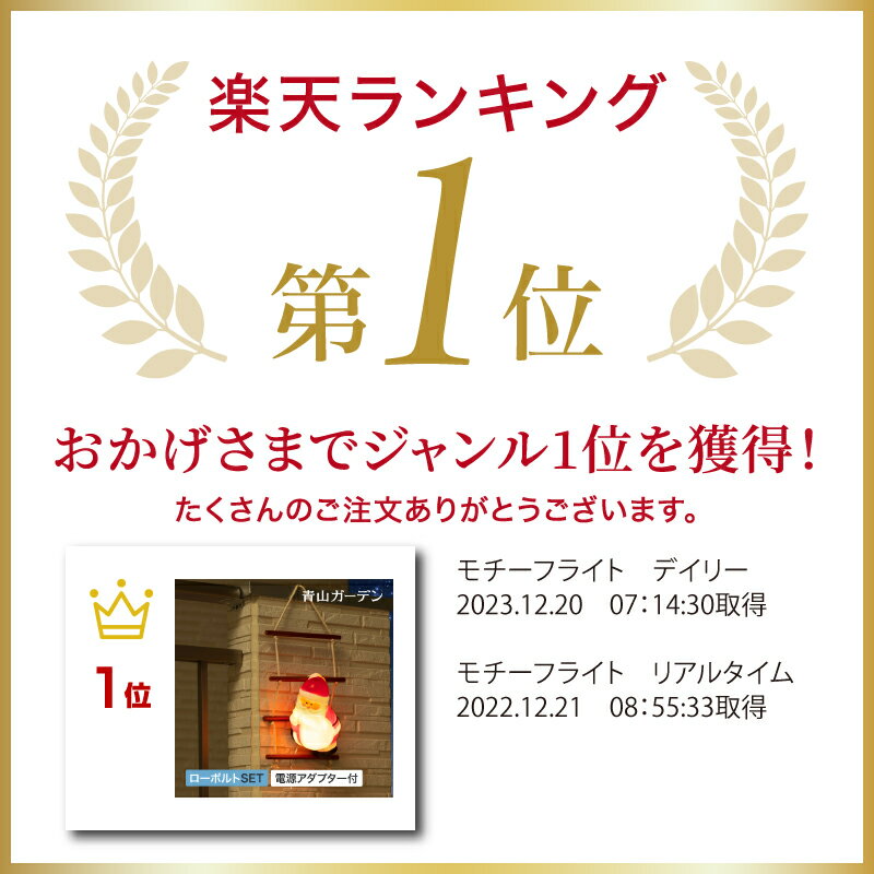 ■商品名:はしごサンタ 1pc ■コード:75991000 サンタクロースが壁を登ってこっそりとプレゼントを届ける姿が可愛いモチーフライト。 商品情報 使用環境 屋外・屋内 サイズ 約幅20cm×奥行11cm×高さ37cmサンタサイズ:約幅11.5×奥行10.5×高さ19.6cm 重量 約0.3kg 材質 ポリスチレン・天然木・綿・塩化ビニル樹脂 備考 ※本商品は連結できませんコード全長:約5mLED色:シャンパンゴールドLED数:6球定格電圧:36V消費電力:0.6W※本体のみ 関連ワード:イルミネーション イルミネーション 屋外 イルミネーションライト イルミネーション サンタ サンタクロース サンタ 屋外 サンタ はしご人気者のサンタクロースが壁を登ってこっそりと プレゼントを届ける姿が可愛いモチーフライトはしごサンタ 1pcモチーフ屋外・屋内OKサンタクロースクリスマスローボルト簡単設置こちらは はしごサンタ の販売ページです【45秒でご紹介しています】ベランダや壁面を飾る冬の可愛い人気者お待ちかねのサンタクロースが今年もやってきました! 優しい光に癒されるはしごタイプのモチーフライトです。 クリスマスムードをより一層豪華に演出してくれます。LEDの灯りが優しく光る設置方法は吊るすだけ!お部屋の窓辺やベランダのフェンスに飾ってお楽しみいただけます。 愛らしい表情がLEDの灯りにてらされて優しく光ります。点灯イメージ点灯時消灯時省スペースに飾りたい方におすすめサンタが1体のコンパクトタイプで飾りやすく 夜は優しい光に照らされ、昼は可愛いオブジェになります。 省エネ&安全設計LED電球使用 LED電球を使用で省電力。電気代を抑えられます。 ローボルトへ電圧変換 100Vから36Vへ電圧変換します。ローボルトで漏電や感電など万が一の時でも安心です。 使用方法についてサイズについてサイズ重量材質備考約幅20×奥行11×高さ37cm コード全長:約5mサンタサイズ:約幅11.5×奥行10.5×高さ19.6cm約0.3kgポリスチレン 天然木・綿 塩化ビニル樹脂LED色:シャンパンゴールド LED数:6球 定格電圧:36V 消費電力:0.6W※本体のみ※本商品は連結できませんLGTシリーズに使えるアクセサリーはこちらご理解くださいLEDなど電子部品の性質上、光の色にバラツキがあります。同じ商品でもロットや製造年によって色味が異なりますが、不良品ではございません。メーカー直送品の為、色味をそろえての出荷はできません。上記の理由による返品・交換はできません。 予めご了承の上、ご注文をお願い致します。バリエーションブローライトはしごサンタ Sサイズ 3Pブローライトはしごサンタ Lサイズ 3Pはしごサンタ 1pc本商品の 販売ページです型番:LGT-BL01