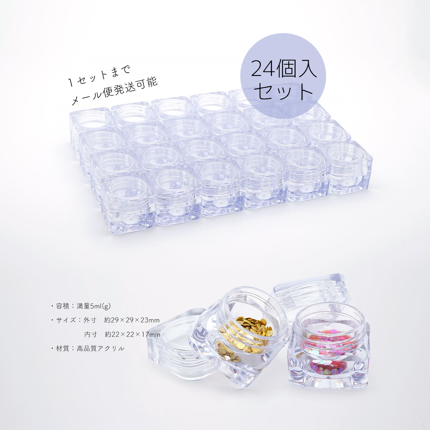 ラグジュアリー スクエア パーツケース 24個入り セット 5g クリア ケース クリームケース クリーム パーツケース パーツ ネイル ストーンケース ストーン ホロ パウダー 収納 ハンドメイド アクセサリー レジン クリーム容器 高品質