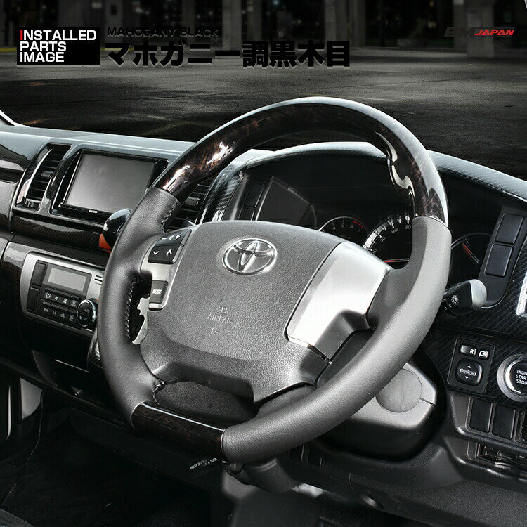ハイエース 200系 4-8型 2013(H25).11- ステアリング ガングリップ ハンドル マホガニー調黒木目 ライトブラウン ピアノブラック カーボン調 オールレザー 内装