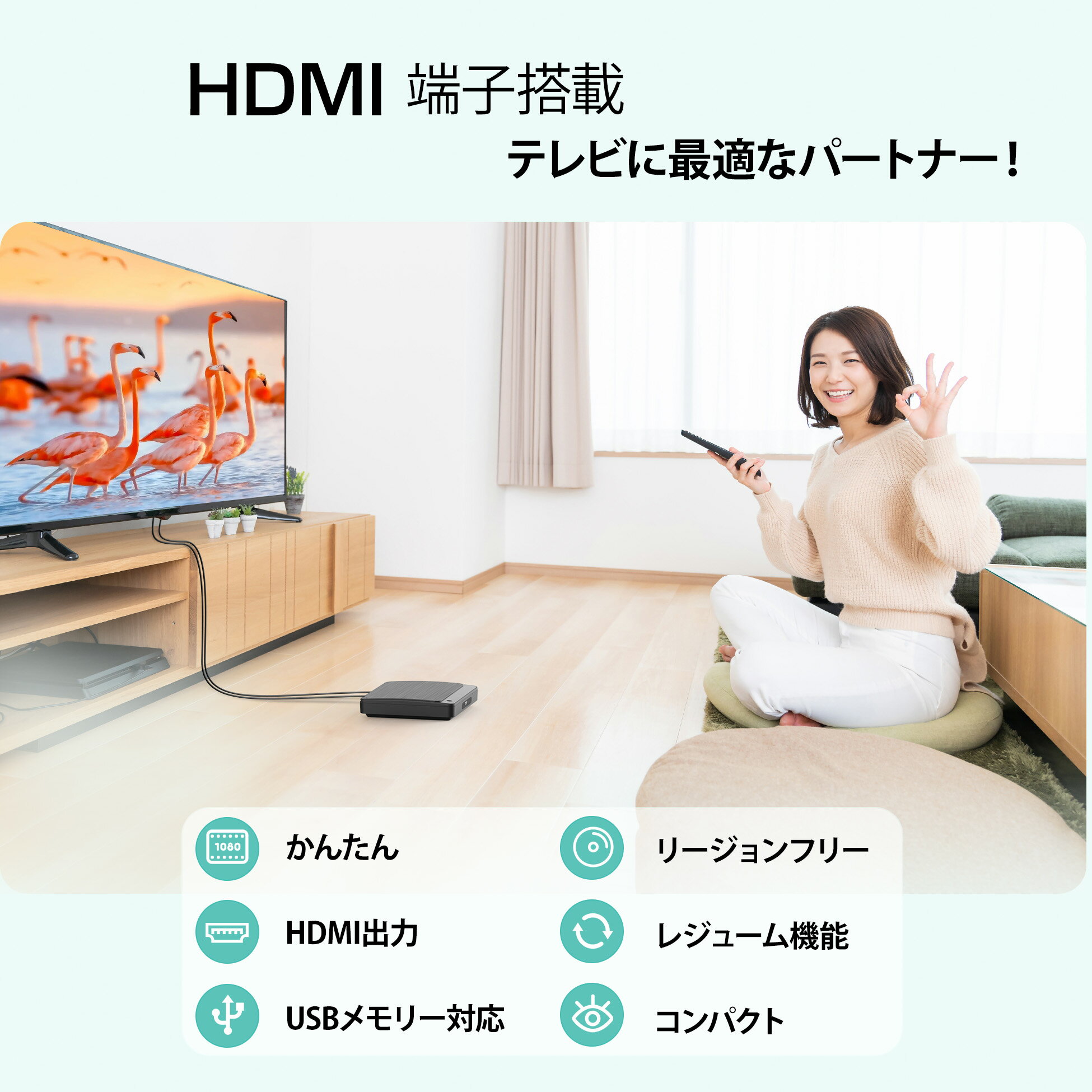 DVDプレーヤー HDMI/USB/イヤホン端子搭載 テレビ・プロジェクター接続可 コンパクト リモコン付 リージョンフリー CPRM対応 DVD/CD再生 Type-C充電 5V2A対応 日本語説明書付 【Blu-ray非対応】