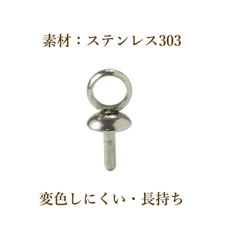 [50個] ステンレス 【 差し込み 】ヒートン [銀シルバー] 蓋 キャップ アクセサリーパーツ 金具 素材 金属アレルギー