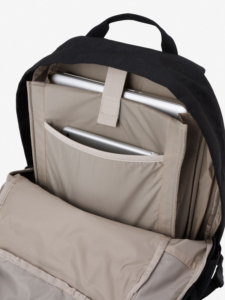HOT SHOT ホットショット ファーストデザインを彷彿させるクラシックな表情ながら、現代のライフスタイル需要に合わせた収納デザイン デバイスやガジェット、アクセサリーなどを収納できる日常生活での利便性を追求した高機能デイパックです。ボルダーデイパックは、24Lの収納力が特長の大容量モデル。フロントにはパッド入りのガジェットスリーブを内蔵し、本体内部には13インチまでのPCやタブレット、A4サイズまでのドキュメントファイルなどが収納できる蛇腹式のスリーブを装備。さらに、自立するボックス型にデザインすることで、内部へのアクセスと収納物の出し入れをスムーズに行えます。貴重品の収納に便利なジッパー付きの隠しポケットを設置。素材は軽量で高強度の600デニールリサイクルポリエステルを使用した、環境への負荷を抑えるグリーンマテリアル製品です。日常のカジュアルユースから荷物の多い社会人まで幅広いニーズに対応します。 Fabric 600Dリサイクルポリエステル Function 自立しやすいセルフスタンディングボトム構造/取り出しやすい蛇腹式パッドつきPCスリーブ+タブレットスリーブ/小物、ガジェット類の収納に便利なフロント上部ポケット/ジッパー式サイドヒドゥンポケット/ずり落ちを軽減するストレッチウェビングテープ/スパインチャネル/リフレクター 【Weight】 約850g 【容量】 24L 【寸法】H45×W33×D18cm