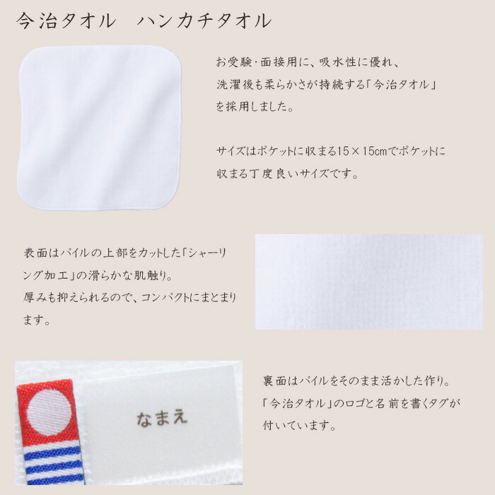 メーカー希望小売価格はメーカーカタログに基づいて掲載していますフォーマル専門店CHOPINの受験用品 素材 綿100% 日本製(今治タオル) サイズ(cm) 15cm×15cm 角丸メロー仕上げ オススメ商品 ミニティッシュケース 今治タオル刺繍入りハンカチ 単品 レッスンバッグ