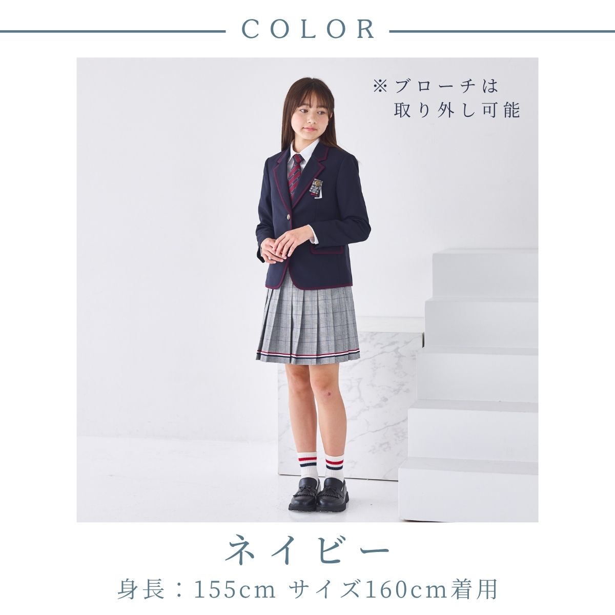 メーカー希望小売価格はメーカーカタログに基づいて掲載していますキッズフォーマル専門店が自信をもってお届けする細部までこだわったプレミアムスーツ パイピングジャケットスクールスーツ5点セット ↑↑↑単品リボンはこちらから↑↑↑ おすすめのシーン 卒業式 受験 面接 結婚式 発表会 式典 七五三 セット内容 パイピングジャケットスクールスーツ5点セット ジャケット / ブラウス / スカート / ネクタイ / エンブレムワッペン 原産国 ジャケット・ブラウス:バングラデシュ スカート・ネクタイ:中国 素材 [ジャケット] 表地 本体:ポリエステル100% 別布:ポリエステル70%、レーヨン30% 裏地 ポリエステル100% [ブラウス] ポリエステル100% [スカート] 表地 本体:ポリエステル83%、レーヨン15%、ポリウレタン2% テープ:ポリエステル100% 裏地 ポリエステル100% [ネクタイ] ポリエステル100% 商品番号 2471-2555 商品仕様 裏地 あり なし ジャケット・シャツ留め具(ボタン) あり なし パンツ留め具(ボタンフライ、アジャスターゴム) あり なし ネクタイ(ボタンループ) あり なし エンブレムワッペン(安全ピン) あり なし ポケット 右 左 両側 なし ■サイズ *対応サイズ 150サイズ=身長145〜155cm / 160サイズ=身長155〜165cm / 165サイズ=身長160〜170cm ◇ジャケット 150:肩幅37.5、胸囲87、袖丈52、着丈54 160:肩幅39.5、胸囲93.5、袖丈56、着丈58 165:肩幅40.5、胸囲96.5、袖丈58、着丈60 ◇ブラウス 150:肩幅36、胸囲88、袖丈47.5、着丈52.5 160:肩幅38、胸囲94、袖丈51.5、着丈56.5 165:肩幅39、胸囲97、袖丈53.5、着丈59 ◇スカート 150:ウエスト64、総丈48 160:ウエスト68、総丈51 165:ウエスト70、総丈52.5 サイズ表は商品仕様書の数値です。素材の特性上、商品の実寸は最大2cm程度の誤差が生じる可能性がございます。 ※商品がお手元に届きましたら、7日以内にご試着をお願いします。 (商品ご到着後7日を過ぎると返品・交換を承る事ができません) [卒業式 面接 フォーマル スーツ 女の子 小学生 中学生 子供服 ジュニア キッズ 結婚式 発表会 七五三 オケージョン 式典 セレモニー ジャケット スカート ネイビー 紺 グレー チェック ライン CHOPIN/ショパン]