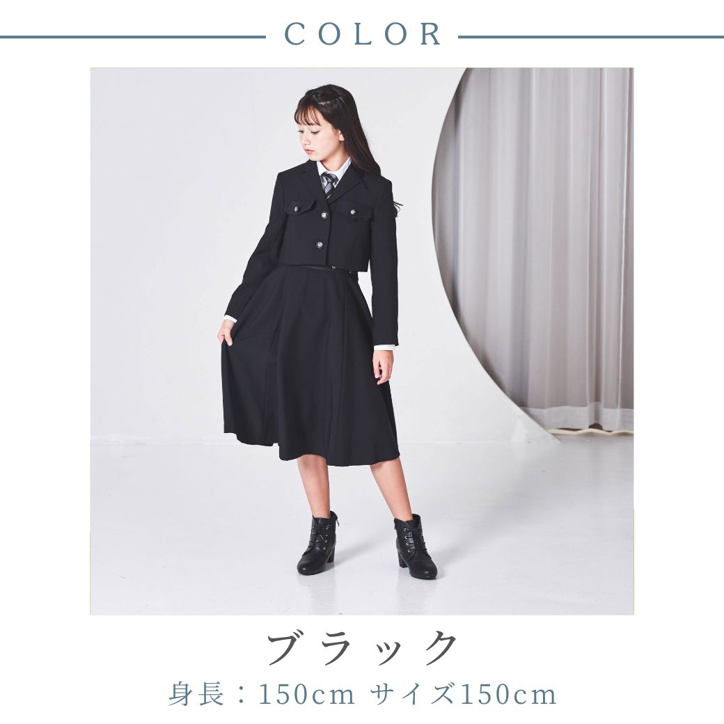 メーカー希望小売価格はメーカーカタログに基づいて掲載していますキッズフォーマル専門店が自信をもってお届けする細部までこだわったプレミアムスーツ ショートジャケットハイウエストスカートスーツ 【ショートジャケット×フレアスカートセット】 ショートジャケットとハイウエストスカートの黄金バランスで脚長効果抜群。 オールブラックにツヤボタンとアクセサリーピンが華やかさをプラス。 ストラップ付きの美シルエットスカートは、360度どこから見ても大人っぽく。 単品でも着回しOK。しわになりにくい素材でお手入れも簡単です。 ケープライクフレアスリーブジャケットスーツ - Design / Styling 【ケープ風スリーブ×ボックスプリーツセットアップ】 たっぷり生地を使ったケープ風スリーブが華やかで、華奢見え効果も◎。 ハイウエスト&ボックスプリーツのスカートは脚長に見せつつ着回し力も抜群。 グレイッシュブルーのブラウスにバイカラーデザインが映える、大人っぽく洗練されたスタイル。 ネクタイとワッペンは取り外し可能でアレンジ自在。 -Spec- ■商品詳細 【ショートジャケットセット:セット内容】 ネクタイ、チャーム、ブラウス、ジャケット、スカート セット ・スカート:右脇ポケットあり、左脇ファスナー、後ろゴム ・肩ストラップ3段階調節可能 【ケープ風セット:セット内容】 ネクタイ、チャーム、ブラウス、ジャケット、スカート セット ・スカート:右脇ポケットあり、左脇ファスナー、後ろゴム ■素材 【ショートジャケットセット:セット内容】 ジャケット ポリエステル100% ブラウス 本体 ポリエステル65%、綿35% 別布 ポリエステル100% スカート ポリエステル100% ネクタイ ポリエステル100% 【ケープ風セット:セット内容】 ジャケット ポリエステル100% ブラウス 本体 ポリエステル92%、ポリウレタン8% テープ ポリエステル100% スカート ポリエステル100% ネクタイ ポリエステル100% ■サイズ(cm) *対応サイズ 150サイズ=身長145〜155cm / 160サイズ=身長155〜165cm / 165サイズ=身長160〜170cm 【ショートジャケットセット:セット内容】 ジャケット 150:肩幅37、胸囲86、袖丈52、袖口25、着丈34.5 160:肩幅39、胸囲92、袖丈56、袖口26、着丈37.5 165:肩幅40、胸囲95、袖丈58、袖口26.5、着丈39 ブラウス 150:肩幅36、胸囲88、袖丈47.5、袖口22.5、後丈52.5 160:肩幅38、胸囲94、袖丈51.5、袖口23.5、後丈56.5 165:肩幅39、胸囲97、袖丈53.5、袖口24、後丈59 スカート 150:ウエストゴム〆69、スカート丈61 160:ウエストゴム〆73.5、スカート丈65 165:ウエストゴム〆765、スカート丈67 【ケープ風セット:セット内容】 ジャケット 150:肩幅33、胸囲74、袖丈40.5、着丈37 160:肩幅35、胸囲79、袖丈44、着丈41 165:肩幅36、胸囲82、袖丈45.8、着丈43 ブラウス 150:肩幅39、胸囲94、袖丈45.5、袖口22、後丈55 160:肩幅41、胸囲100、袖丈49.5、袖口23、後丈59 165:肩幅42、胸囲103、袖丈51.5、袖口23.5、後丈62 スカート 150:ウエストゴム〆60、スカート丈41 160:ウエストゴム〆64、スカート丈44 165:ウエストゴム〆66、スカート丈45