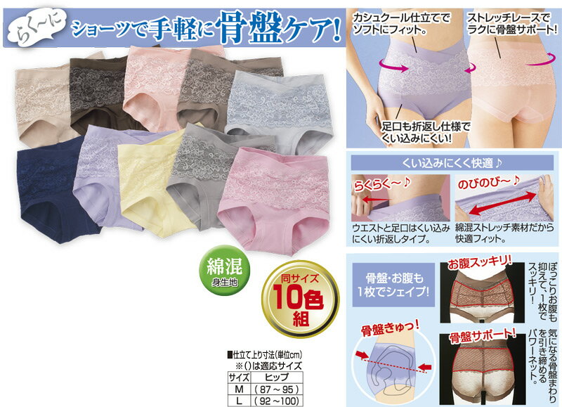 らく〜に骨盤サポートショーツ10色組