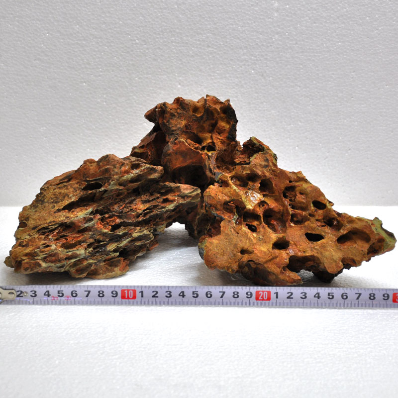 メーカー:オリジナル Item Info 穴が空いた形で空洞状になった形状もあるユニークな形の石です。 木材のような明るい茶色のカラーは水草レイアウト水槽に向いています。 Details サイズ(約)10〜15(センチ) 備考よく洗ってから水槽に入れてください。鋭い部分がありますので取扱いにご注意ください。 写真の石はイメージです。 お送りするものとは形状やサイズがやや異なる場合がございます。