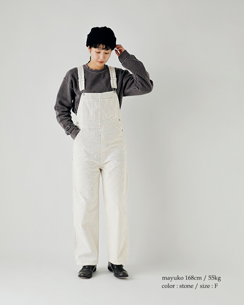 メーカー希望小売価格はメーカー商品タグに基づいて掲載しています 商品カテゴリー【ホワイト】【ブラック】【ブラウン】【ブルー】SMITH’S AMERICAN(スミス アメリカン)コットンレアールオーバーオール“LESHALLESoverall”5475-1170 ワークからストリートへ、 着るだけで洒落るオーバーオール SMITH’S AMERICAN(スミス アメリカン)より、コットン レアール オーバーオール “LES HALLES overall” をご紹介します。 ブランドが掲げる「東海岸のアメリカらしさ」と「フレンチのエスプリ」を掛け合わせたLES HALLESシリーズの一着です。 ワークウェアの実用性をベースにしながらも、街で映える洗練されたムードをプラス。 シンプルながらも洒落感のあるデザインが魅力です。 程よくゆとりを持たせつつ、すっきりと見えるシルエットに仕立てられているため、カジュアルにも上品にも着こなし可能。 季節感のある生地やヴィンテージライクな風合いを楽しめる仕上がりで、着込むほどに増す味わいもポイント。 Tシャツやシャツを合わせた定番スタイルから、ニットやアウターを重ねたレイヤードまで、幅広いコーディネートにマッチ。 “日常にちょっとしたフレンチシックを”叶えてくれるオーバーオールです。 程よくゆとりを持たせつつ、テーパードを効かせたすっきりとしたライン。カジュアルすぎず、上品さを漂わせるバランスの良いシルエットに仕上がっています。 フロントビブ ワークウェアらしい存在感のある胸当てデザイン。 シンプルながらもトップスとのコントラストでコーデのアクセントになります。 長さ調節が可能なショルダーストラップを採用。 体型や着こなしに合わせてフィット感を調整でき、ゆったり着たい日も、すっきり着たい日も自在にアレンジできます。 ワークウエアの ディテールを 散りばめました 両サイドのツールポケットやハンマーループ。 ホームベース型バックポケット、ブランドオリジナルのトップボタン、ワークウエアの雰囲気も大変魅力的です。 ●コーデュロイ生地 季節感とヴィンテージライクな印象のコーデュロイ生地を使用。 オーバーダイ(製品染め)による彩り豊かなカラーリングが魅力です。 製品染めの為、一枚一枚の風合い/色/サイズが微妙に異なります。 SIZE size(cm) ウエスト ヒップ ワタリ 前股上 股下 裾幅 総丈 F 43 100 60 32 67 23 142 → サイズガイドはこちら country: 中国製 fabric: 綿100% info: 裏地/なし、伸縮性/なし、透け感/なし laundry: お洗濯について: アイロンはあて布を使用してください。 → 洗濯表示について STAFF VOICE ▼model:mayuko 身長:168cm/体重:55kg/靴のサイズ:24.5cm 着用サイズ:F ベルト部分を最大伸ばして着丈はかかとが隠れる長さでした。サイズ感は全体的にジャストサイズでした。厚めのトップスを合わせると少し窮屈感があるかもしれません。脚のラインを拾わずにストレスなく履けて歩けました。思っていたより柔らかい生地なので長時間のお出かけも楽しめそうです。 ウエスト小さい 〇〇●〇〇 大きい 太もも小さい 〇〇●〇〇 大きい ヒップ小さい 〇〇●〇〇 大きい ふくらはぎ小さい 〇〇●〇〇 大きい → モデルサイズ詳細へ
