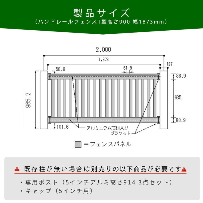 手すり 屋外 カバードポーチ 2m サーファーズハウス フェンス ウッドデッキ ポーチフェンス 手摺 テラス ポーチ 腐らない バイナルフェンス ハンドレールフェンス T型 高さ900 有効内法寸法1873mm 22M3