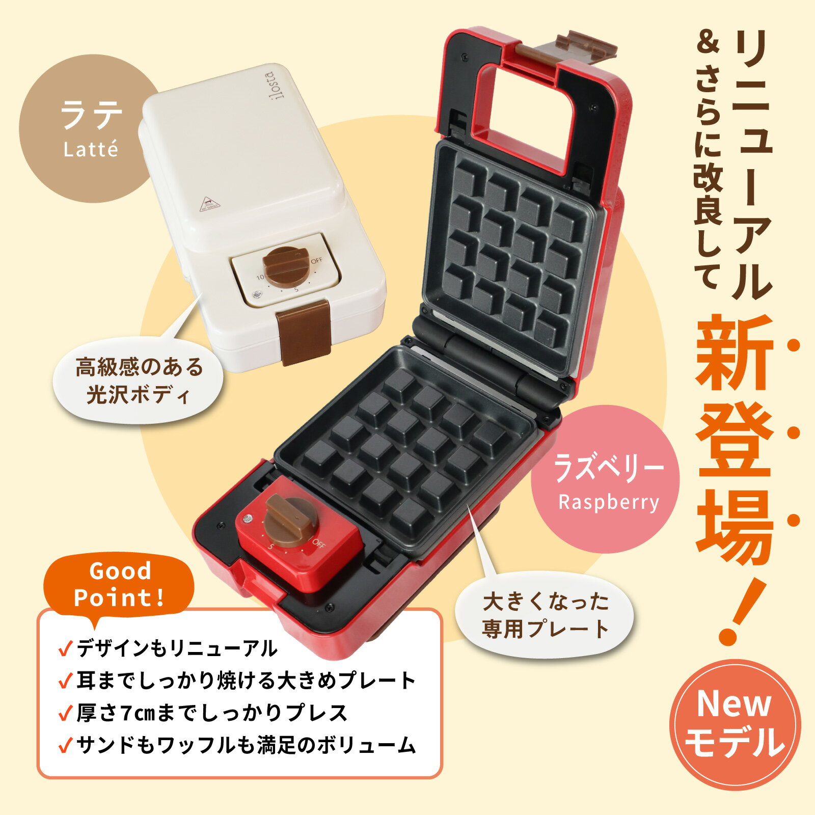ホットサンドメーカー ワッフル【 耳まで焼ける 厚焼き 】 電気 洗える 着脱式 お手入れ簡単 音の出るタイマー機能 最大10分 焼き型2種 コンパクト収納 レトロ 一枚 焼き 一人暮らし ilosta (イロスタ) メーカー公式