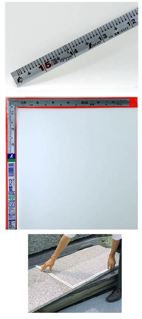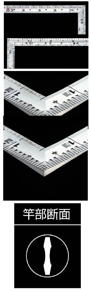 【用途】長さの測定、直角の確認やケガキ作業に使用する曲尺【機能】大きく読み取りやすい目盛数字です。シルバー加工で表面の反射を抑え目盛が読み取りやすくなっています。【仕様】■精度 ●直角度:100mmにつき、0.1mm以下 ●長さの許容差:±0.2mm以下■表目盛 ●長枝:外目盛尺5 ●短枝:外目盛7.5寸 内目盛7寸■裏目盛 ●長枝:外目盛角目 内目盛吉凶、ホゾ ●短枝:外目盛7.5寸 内目盛丸目■表示 ●赤数字入 ■形状:角厚【材質】■ステンレス【サイズ】長枝485mm×短枝242.5mm×巾15mm×厚み1.4mm重量:86g*電気に触れる恐れのある場所では使用しないで下さい。*東日本でよく使われます。