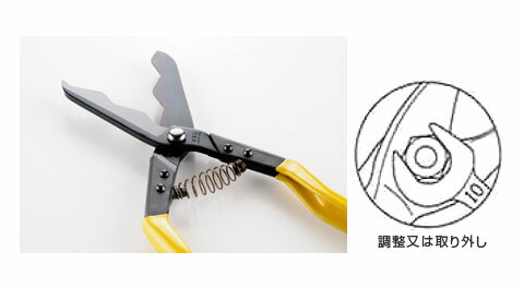 【特徴】トタン板などの薄い金属板や金網、ゴム、ビニール、プラスチックなどの切断に使用します。主にノコ目が付いているので、切断するものを逃さず切ることができる万能金切鋏です。土建・建築・配管・金型・機械・一般家庭・日曜大工に使用します。二山ずつ切り進めて効率2倍!ポリカーボ波板・塩ビ波板の切断に!波板を二山ずつ切り進むことができますので、開閉操作が従来の半分で切断可能です。※従来品は1山ずつしか切り進むことができません。 バネが付いていますので、初心者から専門家まで幅広くご使用いただけます。 幅の広いグリップにソフト樹脂をコーディングしておりますので、手にフィットして手がいたくなりません。 カシメはボルトを使いスプリング座金の使用により、ナットの締付け調整を切断対象により自由に変更できます。 ゆるみ止めナットを使用しておりますので、長期間使用している間にナットがゆるむことを防止します。【用途】ポリカーボネート、塩化ビニールなどのプラスチック波板、トタン板、ガルバリウム銅板などの金属波板の切断に使用します。【仕様】全長(mm):270材質:・刃:刃物用炭素鋼・柄:熱間圧延鋼板/ポリ塩化ビニールコーティング切断能力(目安 板厚mm):・ポリカーボネート波板 1.0・塩化ビニール波板 1.0・トタン波板 0.3