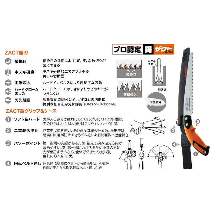 ザクト剪定鋸 植木専用 UP-2700 270mm 取寄品 三陽金属 1264 (庭木 植木 山林 造園 土木 剪定 荒目 刃先細目 強靭ボディ)