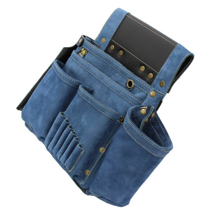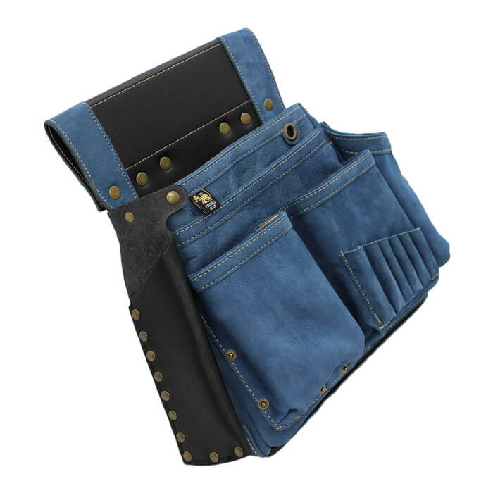 【WEB限定 ふくろ倶楽部 PREMIUM】 朱雀 六型 釘袋 のみ差 すみつぼホルダー付 ライトインディゴ ふくろ倶楽部 PSZ-836SN-LB ( デニム風 ジーンズ風 大工道具 腰袋 工具袋 道具袋 ツールケース ウエスト 本職用 墨つぼ 牛革 日曜大工 DIY DIY工具 ヌバック革 )