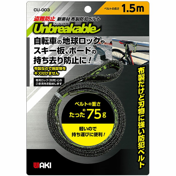 アンブレイカブル Unbreakable 布製防刃ベルト 1.5m 和気産業 CU-003 ( 防犯ベルト 頑丈 地球ロック 刃物に強い 軽い 盗難防止 持ち去り防止 )