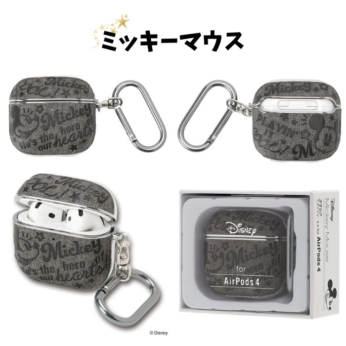 AirPods4 ケース カバー AP4 ハード ディズニー キャラ カラビナ付 レザー調 Disney ミッキーマウス ドナルドダック エイリアン モンスターズ・インク トイストーリー くまのプーさん ワイヤレス充電 しっかり 保護 耐衝撃 韓国風 エアポッズ