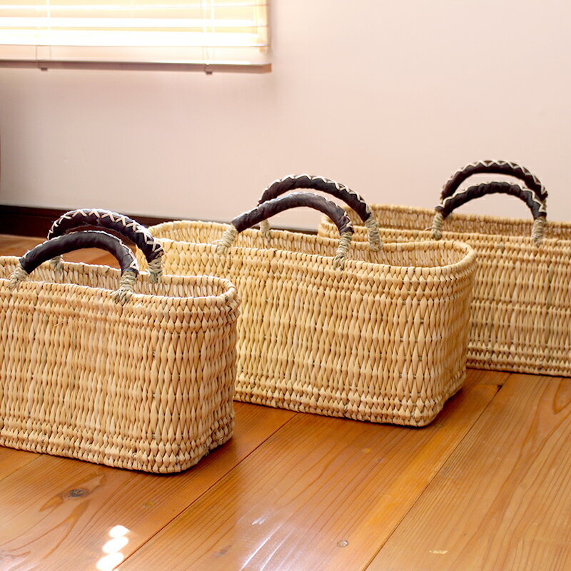 【松野屋 ストローカゴ 革手横長カゴ L】カゴ かご バスケット 収納 モロッコ バッグ ■ラッピング不可